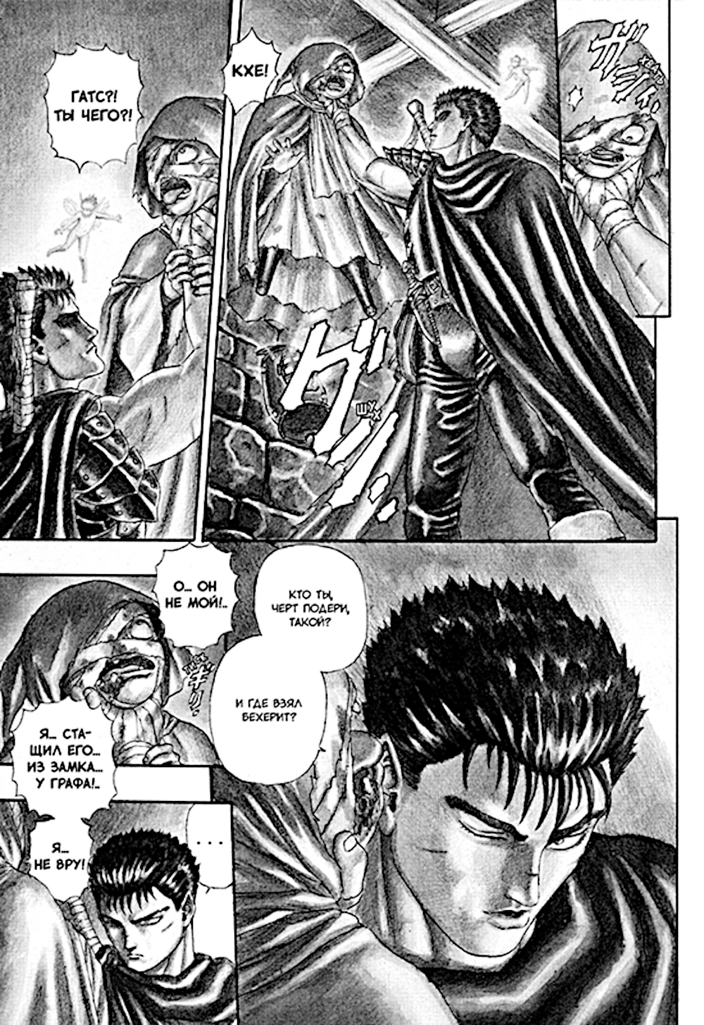 Одинокий воин, облаченный во все черное и с огромным, в человеческий рост, мечом за спиной, странствует по свету, верша свою месть силам зла. Там, где проходит его путь, неизменно остаются горы трупов, а кровь льется рекой. Народная молва нарекла этого воина Черным Мечником, но прежде его звали Гатсом, и он был обычным наемником, пока одно событие не изменило его жизнь навсегда. В одном из трактиров Гатс случайно спасает жизнь эльфу по имени Пак, и тот, восхищенный мастерством и невероятной силой Черного Мечника, решает отправиться с ним в долгий путь. Он еще не знает, насколько тяжела и полна опасностей жизнь Гатса и как кровожадны и могущественны чудовища, которым тот поклялся отомстить... В книгу вошли 1-й и 2-й тома оригинальной манги, 5 крупных глав: «Черный мечник», «Клеймо», «Исполнители желаний» (1-3), которые входят в арку «Черный мечник».| Издательство | ЭксЭл Медиа |