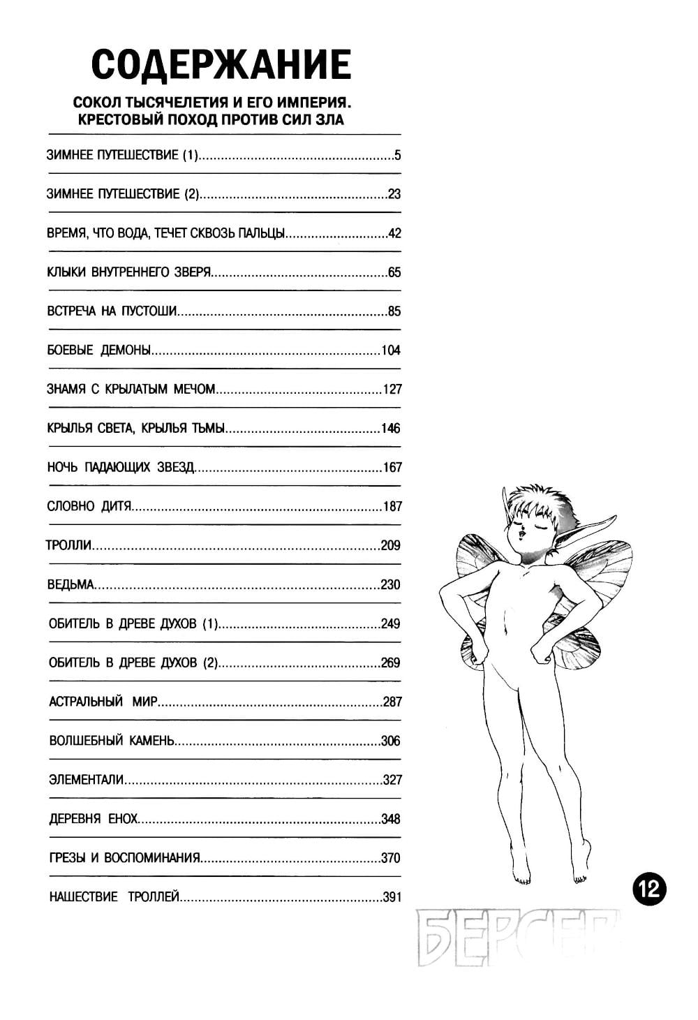 Тот, чье пришествие ждали народы, наконец-то явил себя! Белоснежным соколом оказывается Гриффит, и в первую очередь он спешит на братскую могилу, на поле, усеянное мечами, где нашел свой конец Отряд Соколов. Гатс вне себя от ярости, однако остановить «спасителя» он не может. И Гриффит отправляется строить свое собственное королевство. Гатсу же надо решить, чему посвятить жизнь: спасению Каски или же мести. Тем временем Мидленд на грани краха: король мертв, принцесса беспомощна, кушаны вторглись в города и без труда расправляются с рыцарями. Кто же спасет невинных?| Издательство | ЭксЭл Медиа |