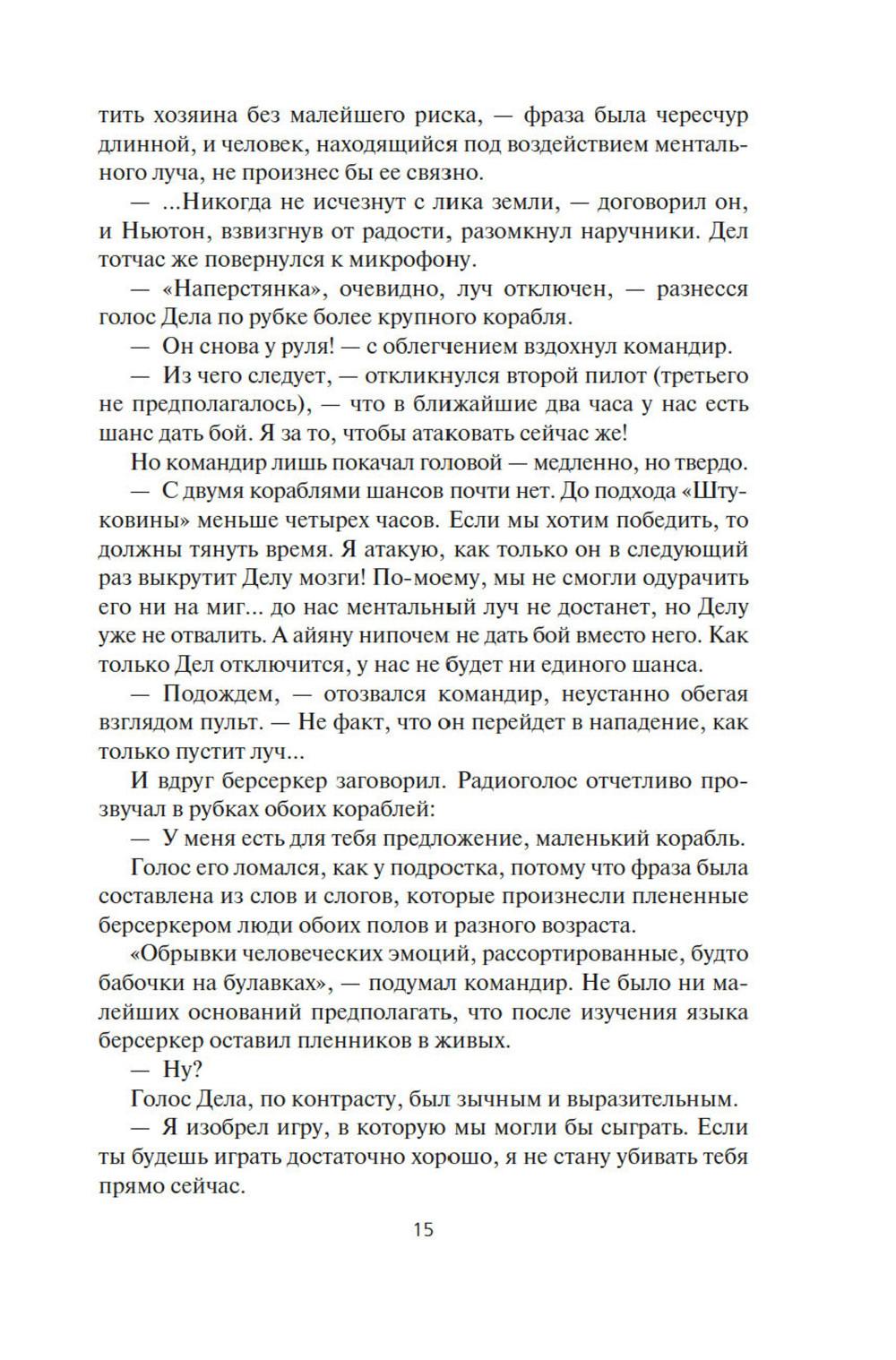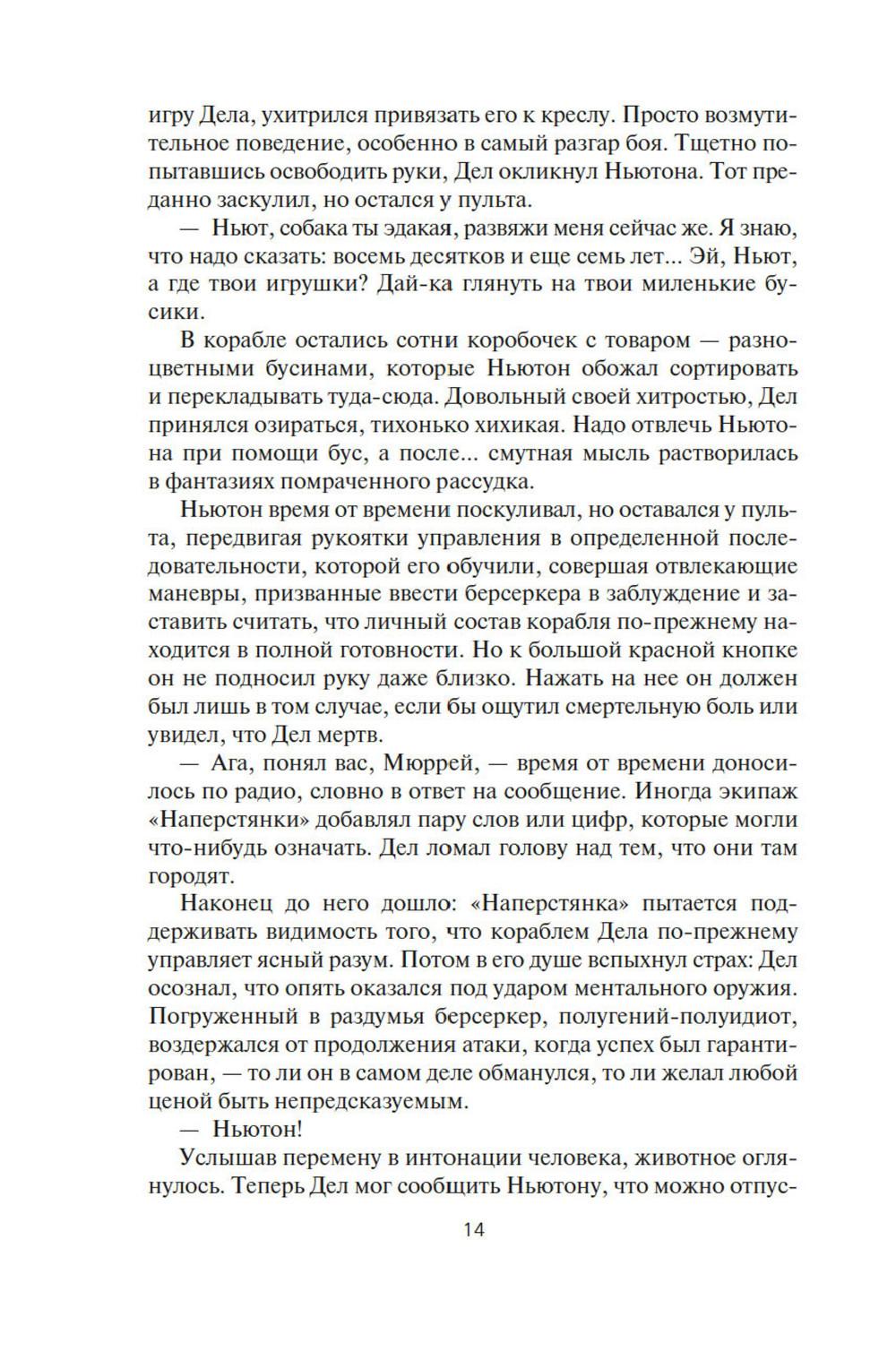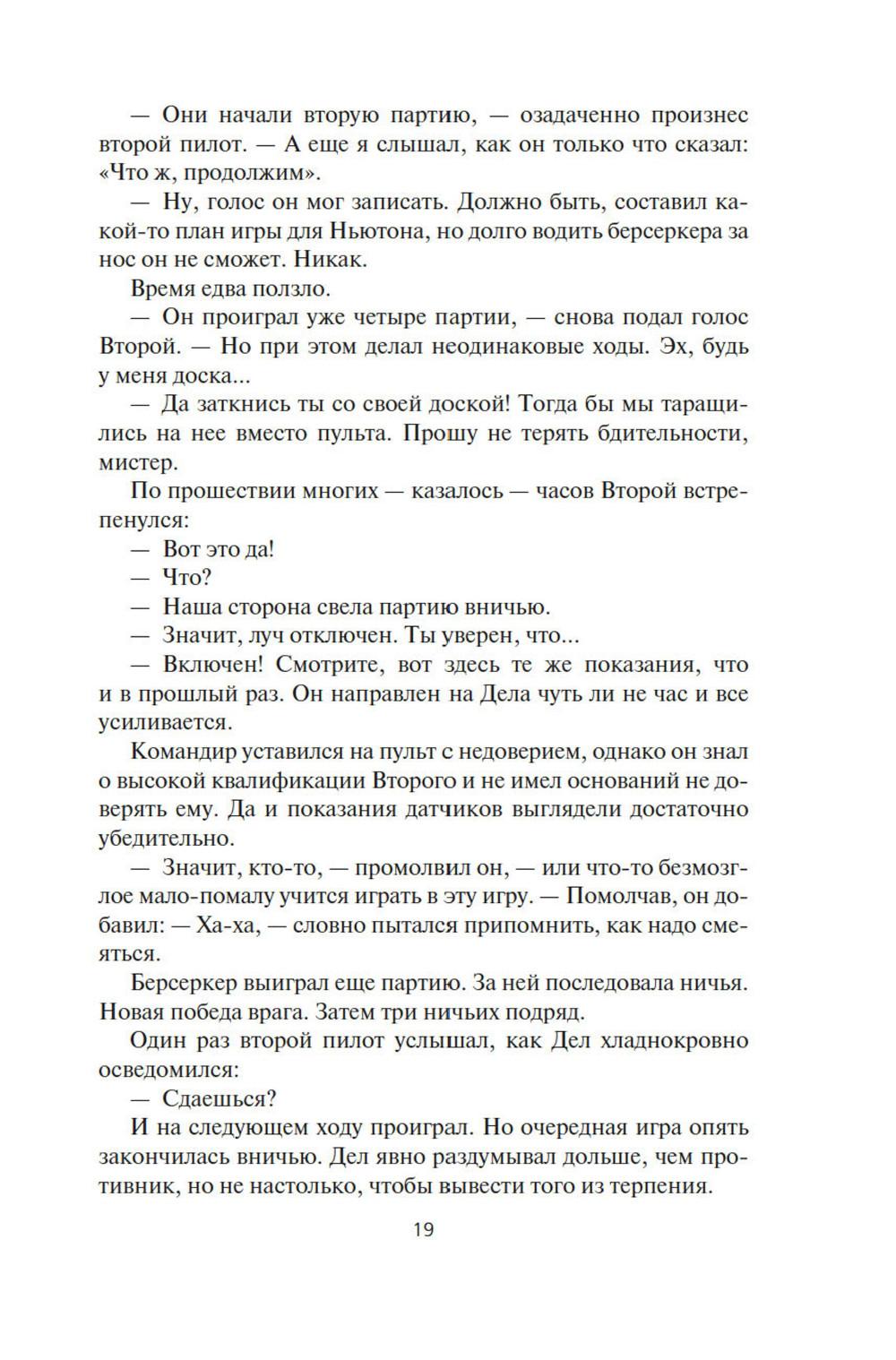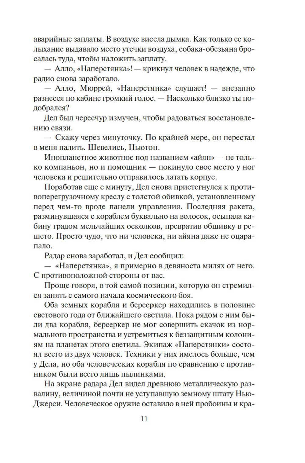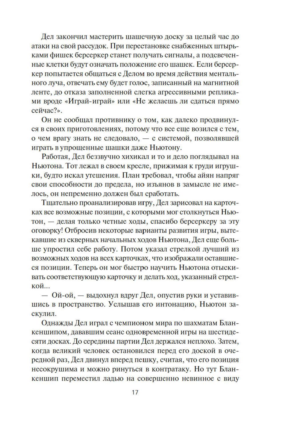 СОДЕРЖИТ ИНФОРМАЦИЮ О НАРКОТИЧЕСКИХ ИЛИ ПСИХОТРОПНЫХ ВЕЩЕСТВАХ, УПОТРЕБЛЕНИЕ КОТОРЫХ ОПАСНО ДЛЯ ЗДОРОВЬЯ. ИХ НЕЗАКОННЫЙ ОБОРОТ ВЛЕЧЕТ УГОЛОВНУЮ ОТВЕТСТВЕННОСТЬ. Давным-давно где-то в глубинах Вселенной встретились две расы разумных существ, и начали войну на взаимное уничтожение, и преуспели в этом. Единственное наследие той войны - абсолютное оружие, которое ей же и положило конец, машины-убийцы, наделенные компьютерным сознанием. Продвигаясь по Галактике, эти корабли величиной с планету уничтожают на своем пути все живое, потому что такова главная задача, заложенная в них создателями. И теперь они добрались до окраин освоенного людьми космоса. Люди нарекли их берсеркерами. Люди тоже умеют воевать. Люди приняли вызов. В этот сборник вошли первые произведения цикла. В «Маске Марса» человеческой психике снова и снова придется вступать в единоборство с ничуть не менее изощренной и противоречивой психикой машин. В «Брате берсеркере» война продолжится не только в пространстве, но и во времени. А в «Планете смерти» израненный и обезумевший вражеский корабль найдет себе тайное убежище и даже создаст собственный религиозный культ.| Издательство | Азбука |