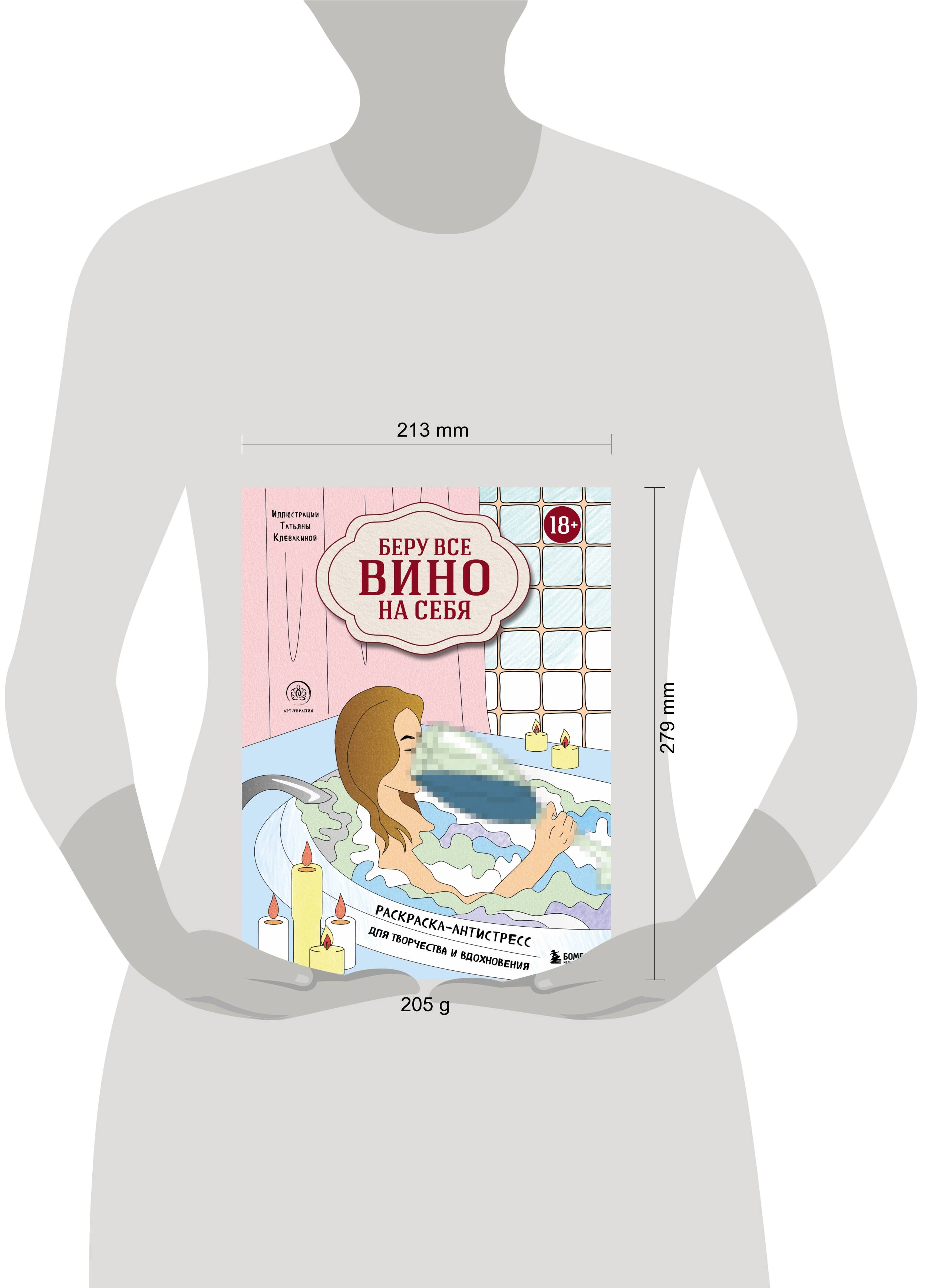 Вы сильная личность с богатым творческим потенциалом, прекрасным юмором и жизненным опытом. И вы знаете, что это такое - брать всё вино на себя. Каждый разворот этой раскраски расскажет вам о приятных, смешных, вдохновляющих случаях и идеях, когда душа раскрывается, креатив бьёт через край, а тревоги забывают путь к вашему сознанию. Вино и раскраски-антистресс объединяет способность увести от будничной суеты и подарить билет в страну беззаботности, а иногда и совершенно ирреальных открытий. Рисунки, карандаши и ваш настрой - всё, что понадобится для скорого и полного обновления и подзарядки. Страницы раскраски сделаны из плотной бумаги, которая позволяет использовать любые художественные инструменты - от грифельных и восковых карандашей до гелевых ручек и красок.| Издательство | ООО "Издательство "Эксмо" |