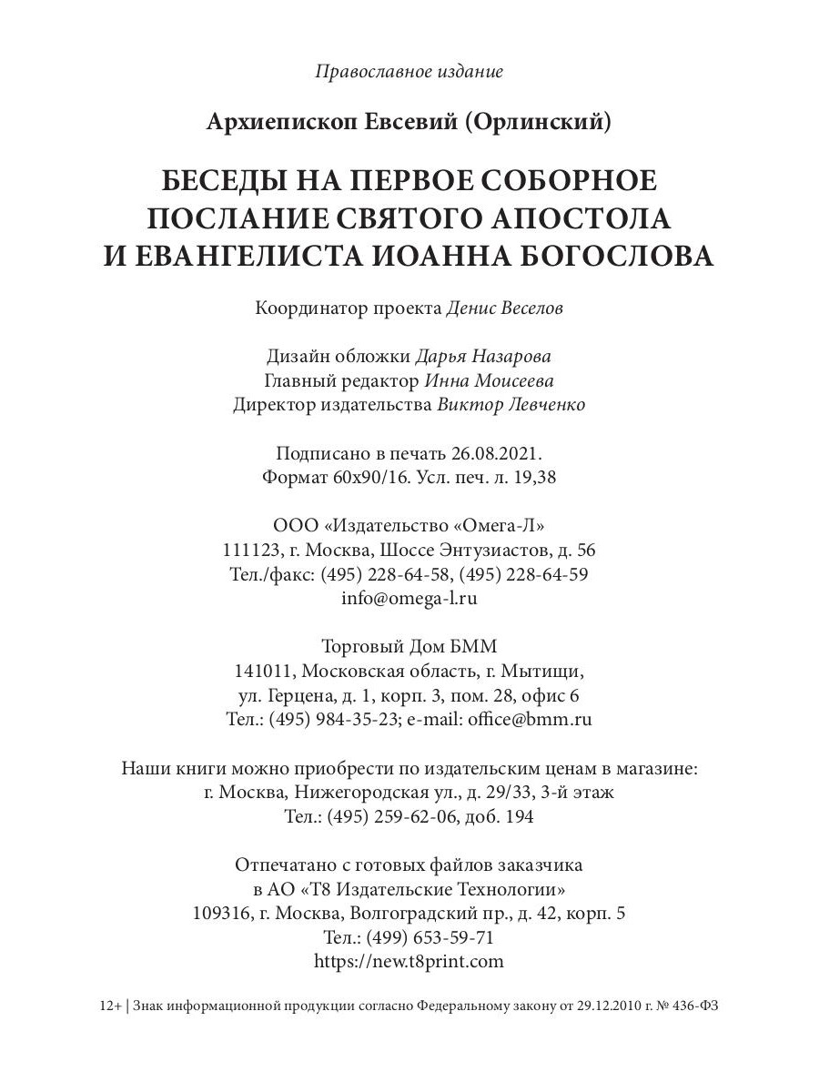 Аннотация: Беседы на Первое соборное послание святого апостола и евангелиста Иоанна Богослова. 2-е изд