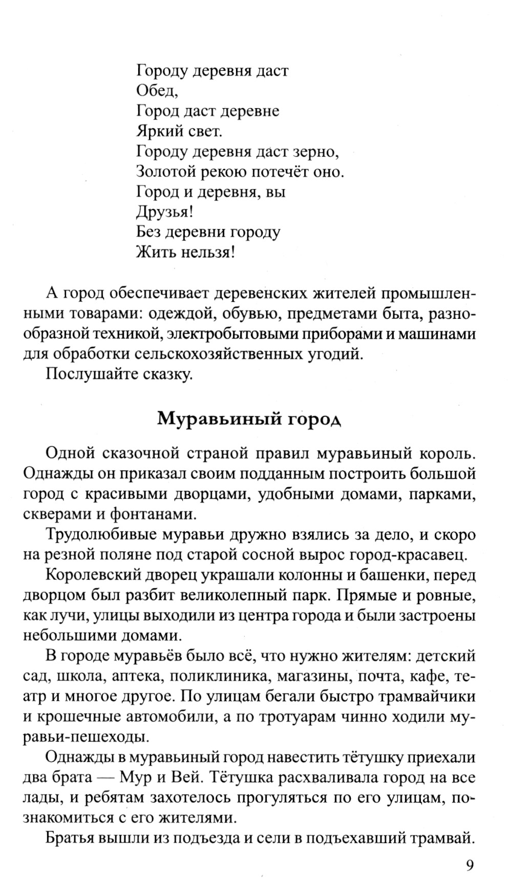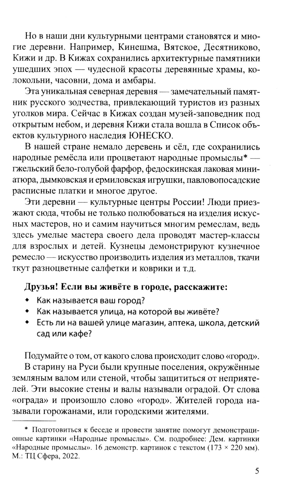 Автор в доступной форме рассказывает о городе и деревне, раскрывая их роль и ценность в развитии страны. Книга содержит сказочные истории, рассказы, стихи о жизни в городе и деревне, которые поспособствуют диалогу между взрослым и ребенком. Вопросы и задания в каждой главе помогут обсудить прочитанное, закрепить основные понятия и расширить словарный запас ребенка. Книга может стать основой для первых бесед по патриотическому воспитанию. Пособие предназначено для воспитателей ДОО, гувернёров, родителей и детей и может быть использовано как для индивидуальных, так и для коллективных занятий с детьми.| Издательство | Творческий центр Сфера |