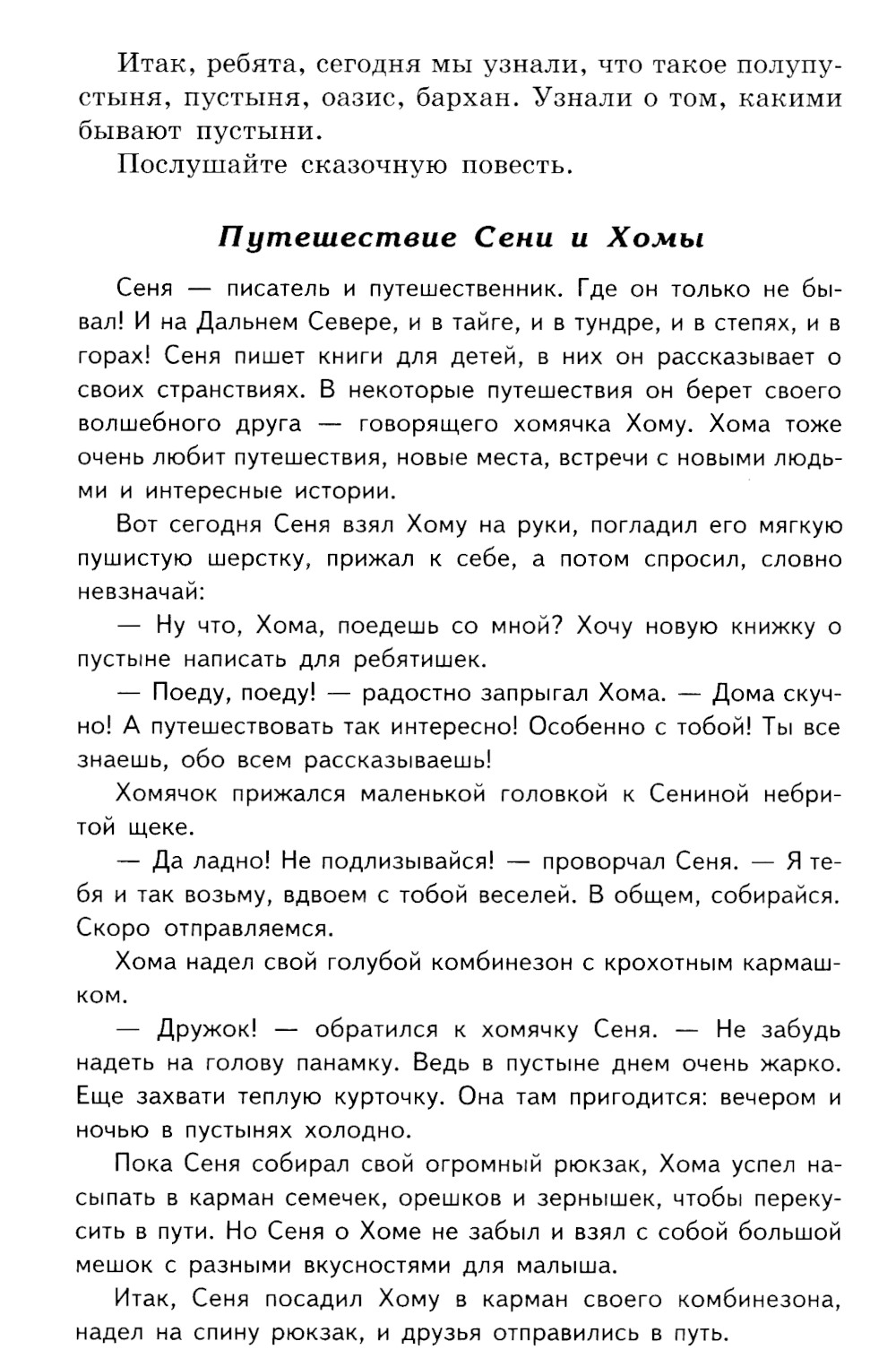В пособии содержится интересная информация о полупустынях и пустынях России. Дети узнают, где они расположены, какой в них климат, как растения и животные приспособились жить в этих краях, и чем занимаются там люди. Доступная форма повествования, построенного в виде бесед с детьми, новые стихи, рассказы и загадки автора, а также сказочная повесть «Путешествие Сени и Хомы» помогут пробудить интерес ребенка к окружающему миру, дать новые знания, воспитать бережное отношение к природе. Книга способствует развитию речи и логического мышления, активизирует внимание детей. Предназначена для работы педагогов, воспитателей, гувернеров старших дошкольников и младших школьников. Материал пособия может быть использован в коллективной и индивидуальной формах обучения.| Издательство | Творческий центр Сфера |