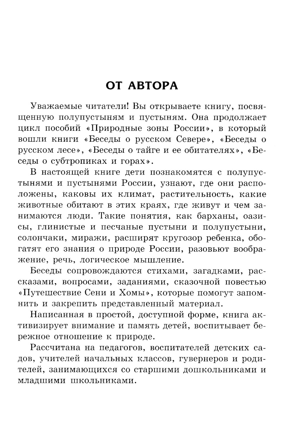 Аннотация: Беседы о пустыне и полупустыне. Методические рекомендации
