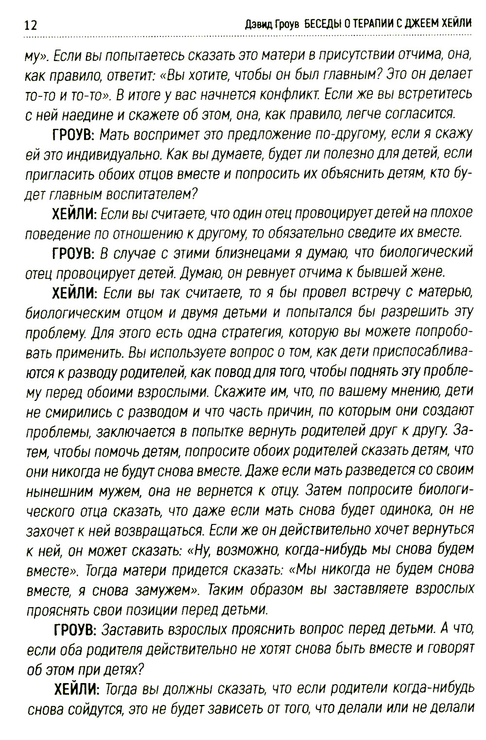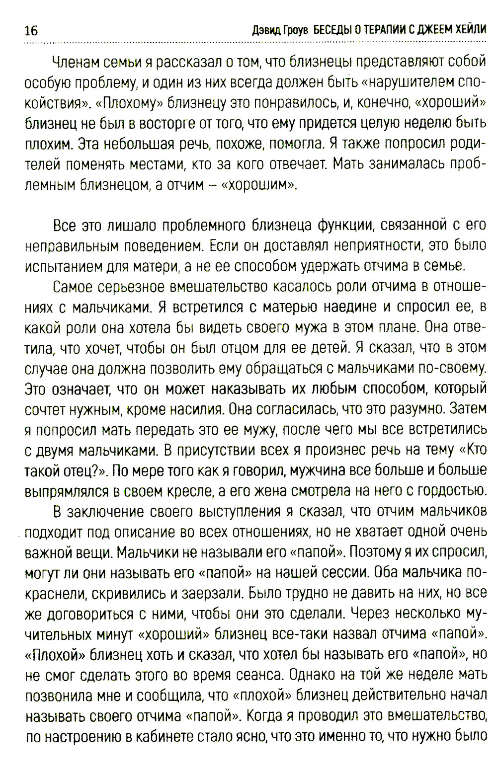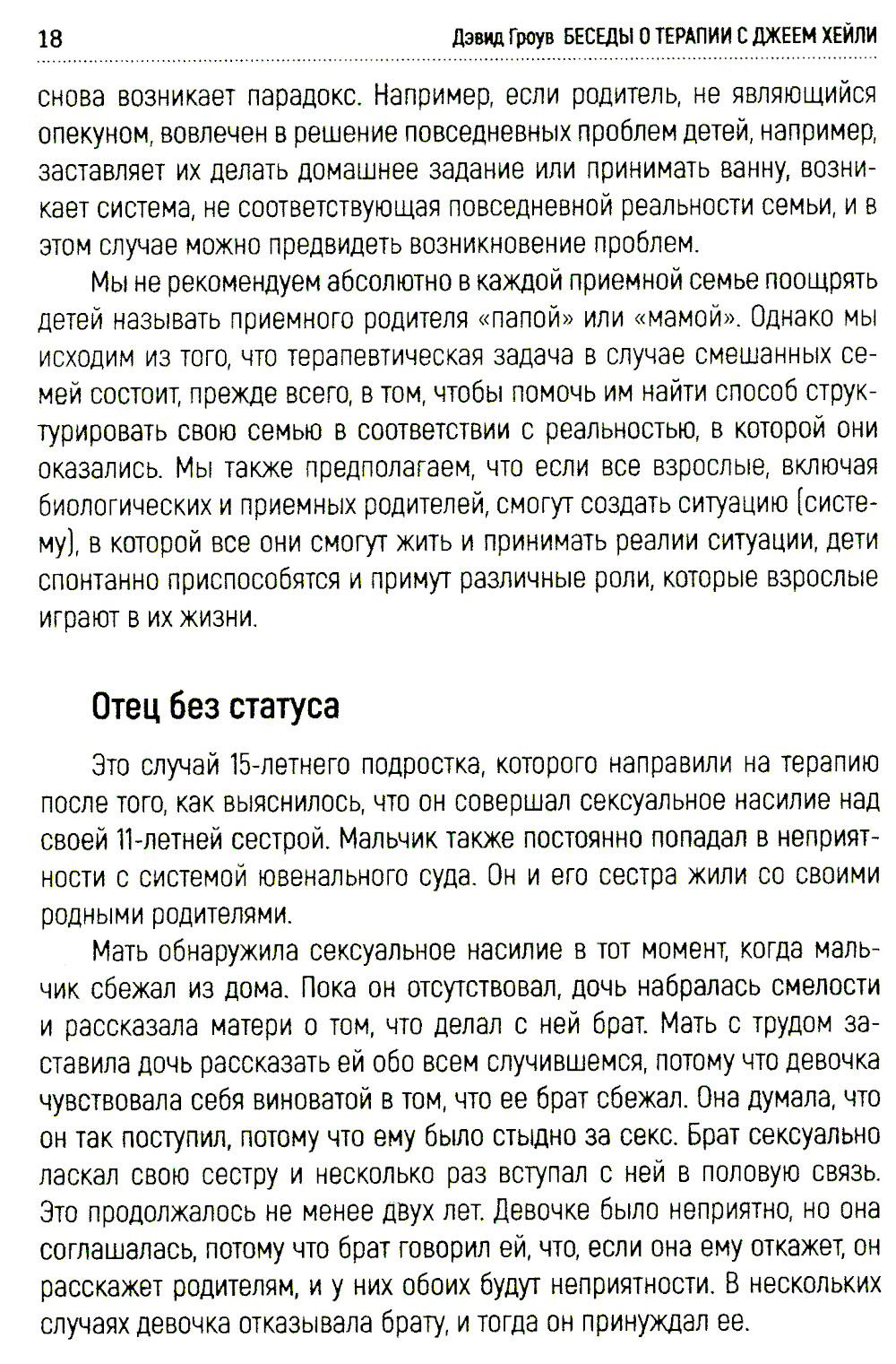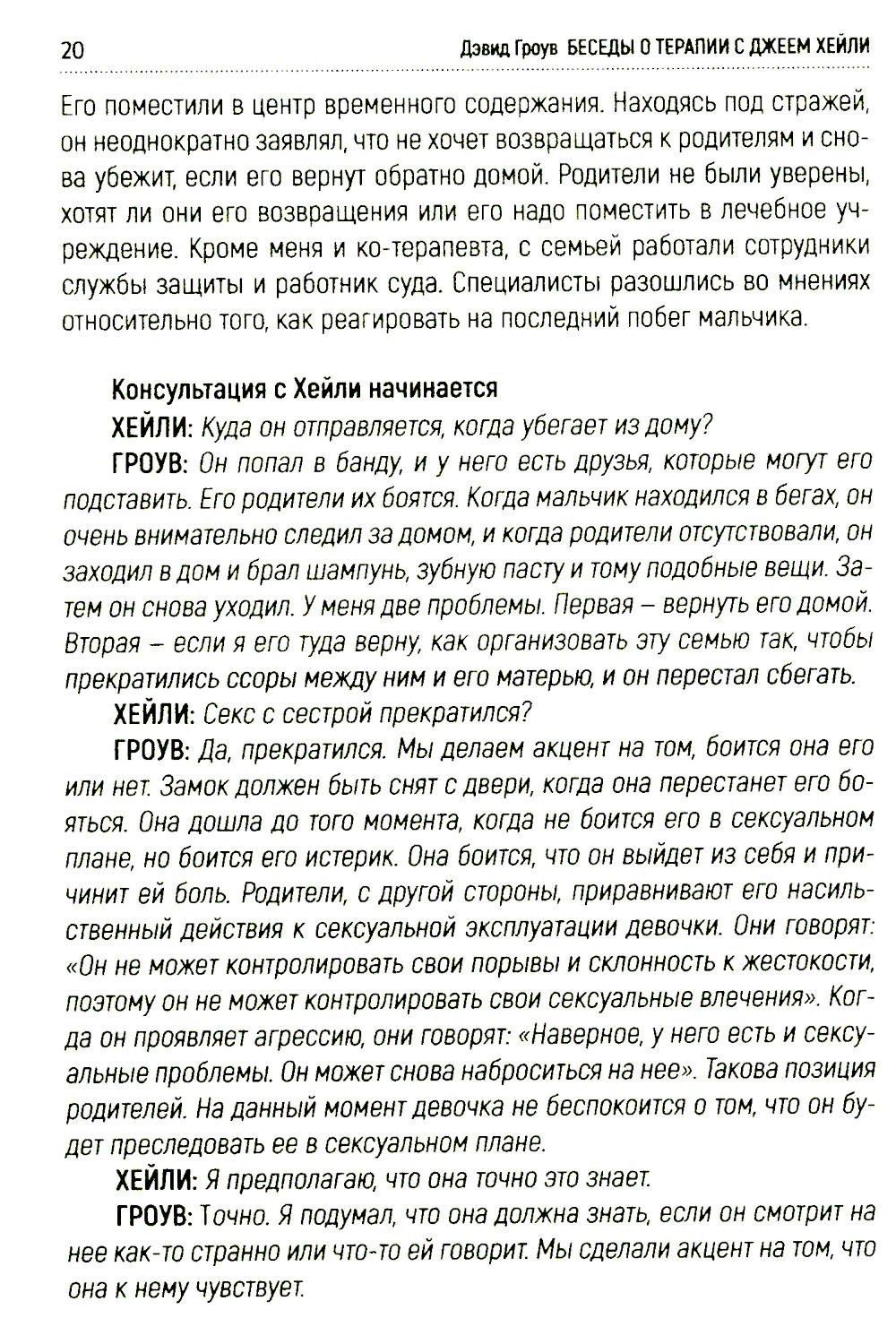 Представьте, что вы можете консультироваться с ближайшим учеником и соратником Милтона Эриксона, основателем стратегической семейной психотерапии Джеем Хейли. В этой книге Гроув и Хейли обсуждают типичные случаи с которыми сталкиваются терапевты в центрах психического здоровья, и разрабатывают инновационные стратегии для решения различных проблемных ситуаций. Хотя в книге описываются отдельные случаи, их обсуждение широко охватывает дилеммы, возникающие при стратегической семейной терапии. «Беседы о терапии» дают богатый материал для размышлений и помогают преодолеть разрыв между индивидуальным и семейным подходами. Эта книга не для «легкого» чтения, а для тщательного и глубокого анализа. Консультанты и терапевты могут найти в этой книге неожиданные подходы к интерпретации взаимоотношений пар, увидеть другой взгляд на терапевтический процесс и творчески использовать это в своей практике.| Издательство | Изд.Базенков И.Л. |