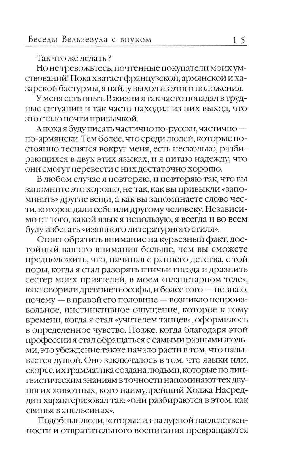«Беседы! Вельзевула со своим внуком» - самое яркое произведение Георгия Гурджиева, философа СОВЕРШЕННО НЕОБЫЧНОГО - и обладающего, что называется, «лица необщим выраженье» даже для богатой оригинальностью видения российской философии. Произведение, на первый взгляд относящееся, скорее, к литературе художественной, чем к философской, - однако «художественность» становится лишь способом «более доступного для читателя» изложения поистине уникальной концепции Г. Гурджиева. Итак, возможно ли изложить в единой книге системы космологии, этики и даже культурологии? Возможно ли, совместив «ортодоксальную» и «апокрифическую» традиции эзотерической прозы, создать на основе их абсолютно оригинальную теорию бытия? Безусловно, можно - потому что Гурджиеву это удалось!| Издательство | Харвест |