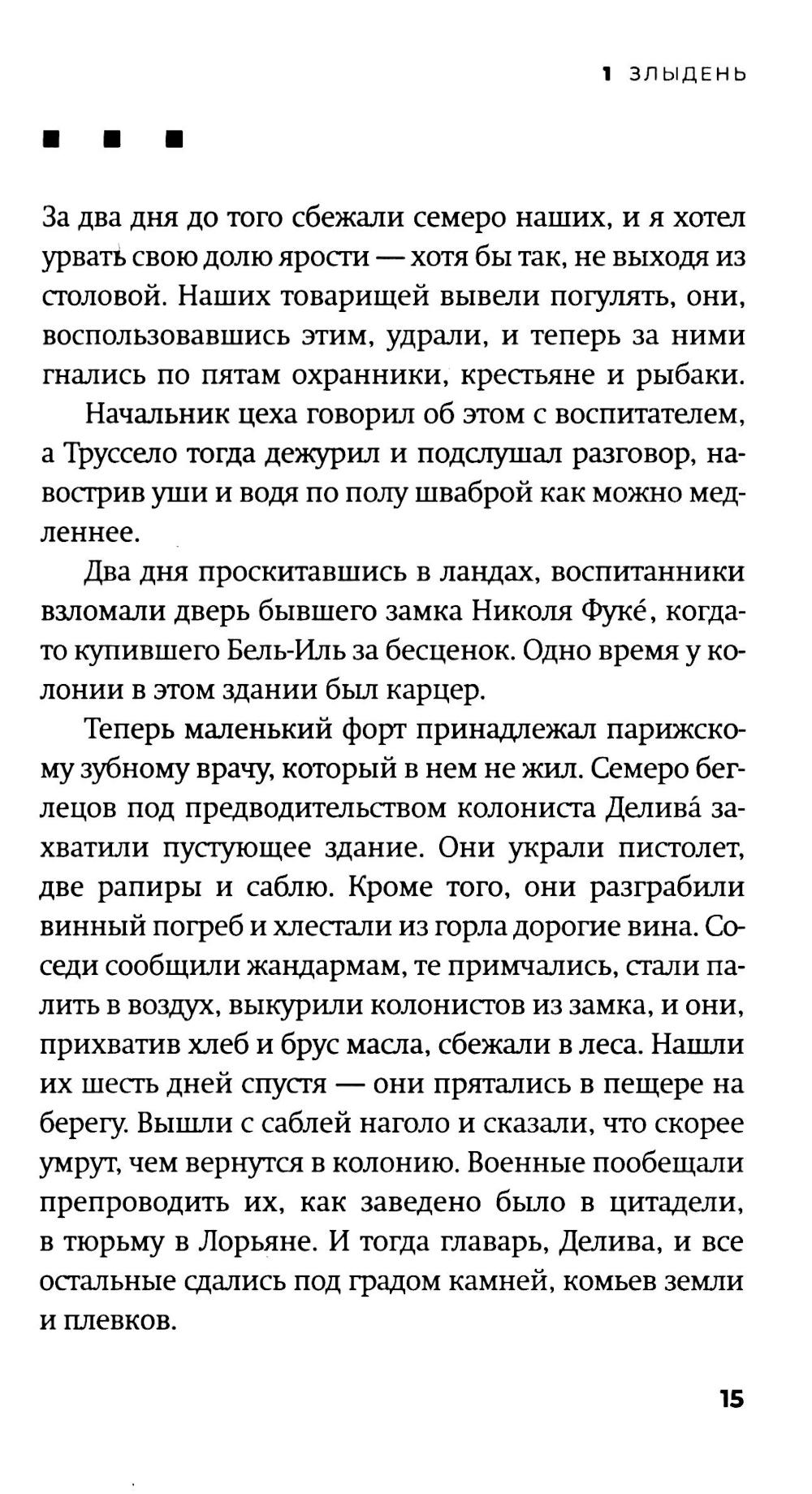 27 августа 1934 года 56 подростков сбежали из колонии для несовершеннолетних на французском острове Бель-Иль. С острова они выбраться никак не могли. На сбежавших мальчиков - некоторые не старше десяти лет - объявили охоту. Надзиратели, жандармы, местные жители и даже редкие туристы с азартом рыскали по острову в поисках изможденных, обессиленных беглецов. За каждого мальчишку, и неважно, десять ему лет или восемнадцать, объявили награду в 20 франков. Будут пойманы все беглецы, кроме одного... История эта полностью правдивая. Колония на острове Бель-Иль существовала с конца XIX века, и с ее обитателями там обращались очень жестоко. Многие из них никаких преступлений не совершили, а всего-навсего были сиротами или подкидышами, которых надо было куда-то пристроить. Попадали туда и совсем маленькие мальчики. И побег воспитанников, как их называли, а на самом деле заключенных, автор не выдумал. А вот главного героя, Жюля Бонно, не существовало. По некоторым документам, беглецов было 55 и все они были пойманы, по другим - 56 и одного преследователи так и не нашли. Сорж Шаландон, по его собственным словам, влез в шкуру этого пятьдесят шестого и написал историю подростка, похожего на него самого, - одинокого, брошенного родными, наказанного без вины, мечтающего о мести и мысленно расправляющегося с обидчиками, чтобы не пришлось делать этого в реальности. Удивительно динамичный, эмоциональный роман. Читая его, не можешь не переживать за судьбу юного беглеца.| Издательство | Фантом Пресс |