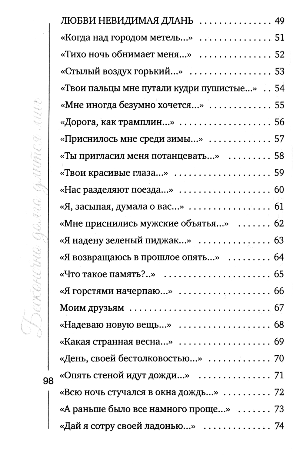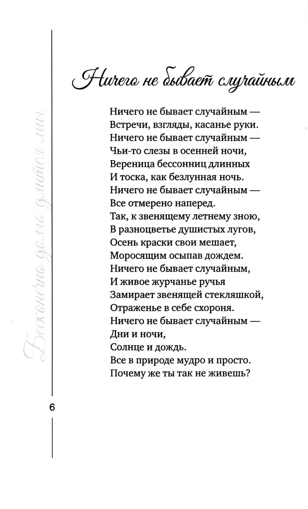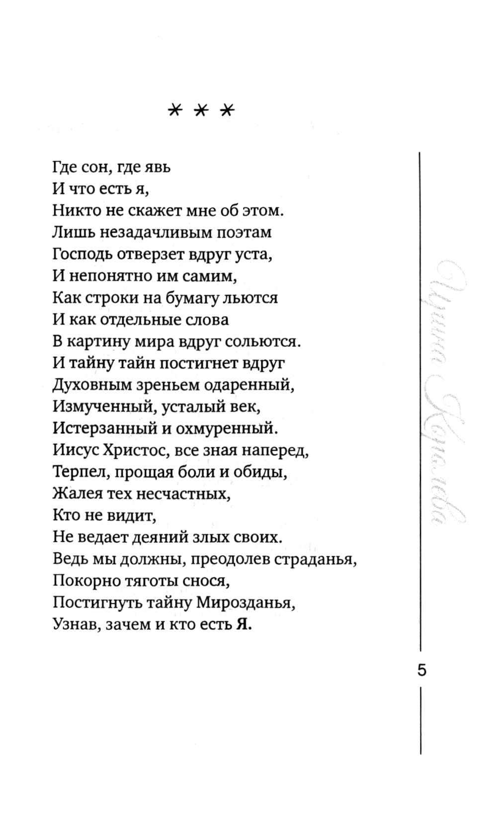 Перед вами не просто сборник поэзии, а настоящая поэтическая исповедь, книга, в которой автор, Ирина Королева, с подкупающей искренностью раскрывает перед читателем свою душу, рассуждая о жизни, любви, Боге и природе - обо всем том, что занимает каждого человека. Ее пронзительная лирика заставляет отрешиться от приевшейся уже суеты и задуматься о вечных вопросах бытия.| Издательство | Рипол Классик |