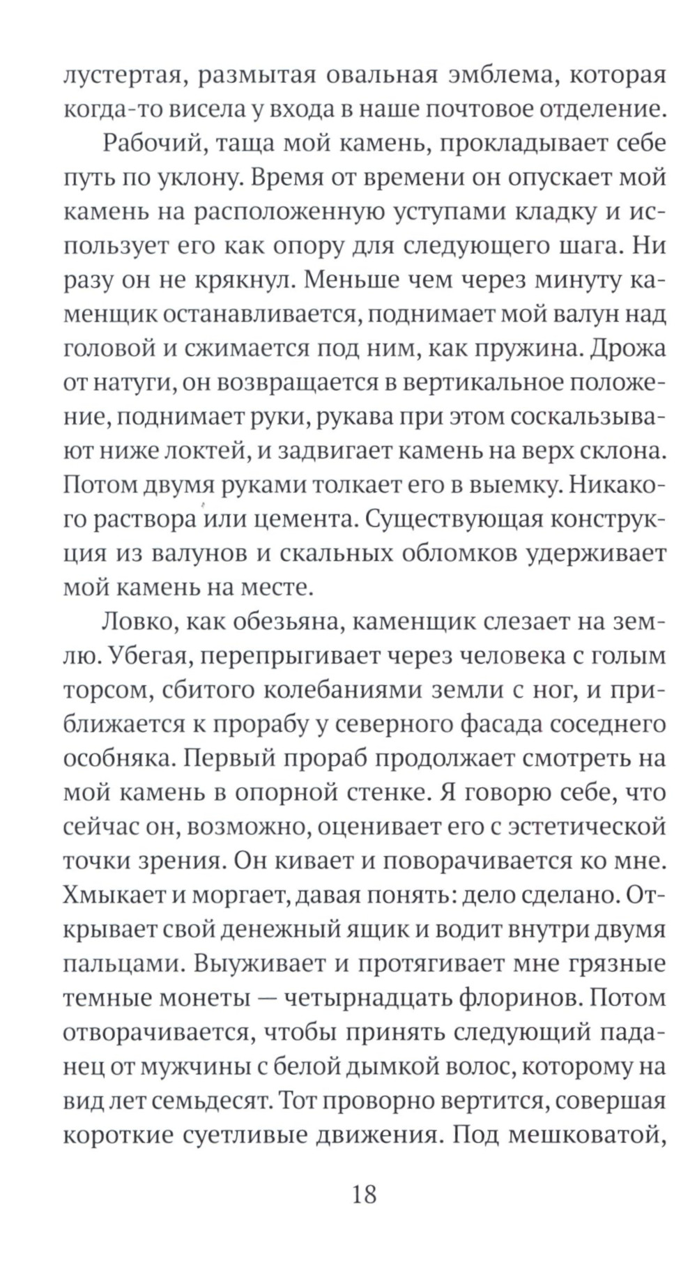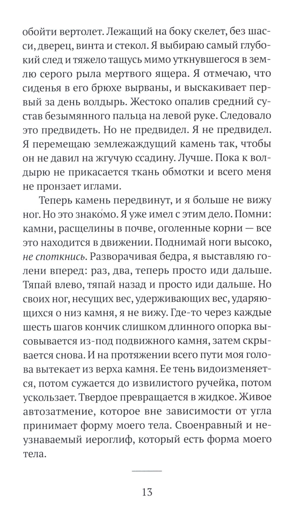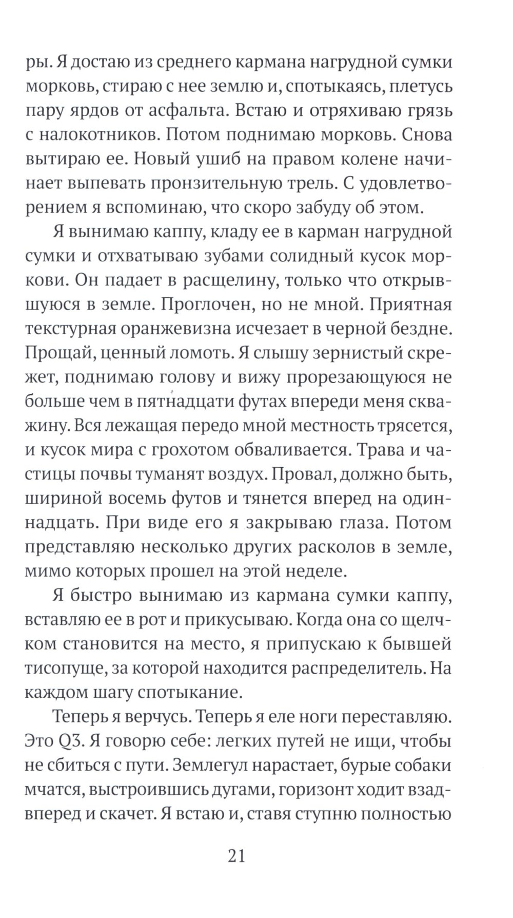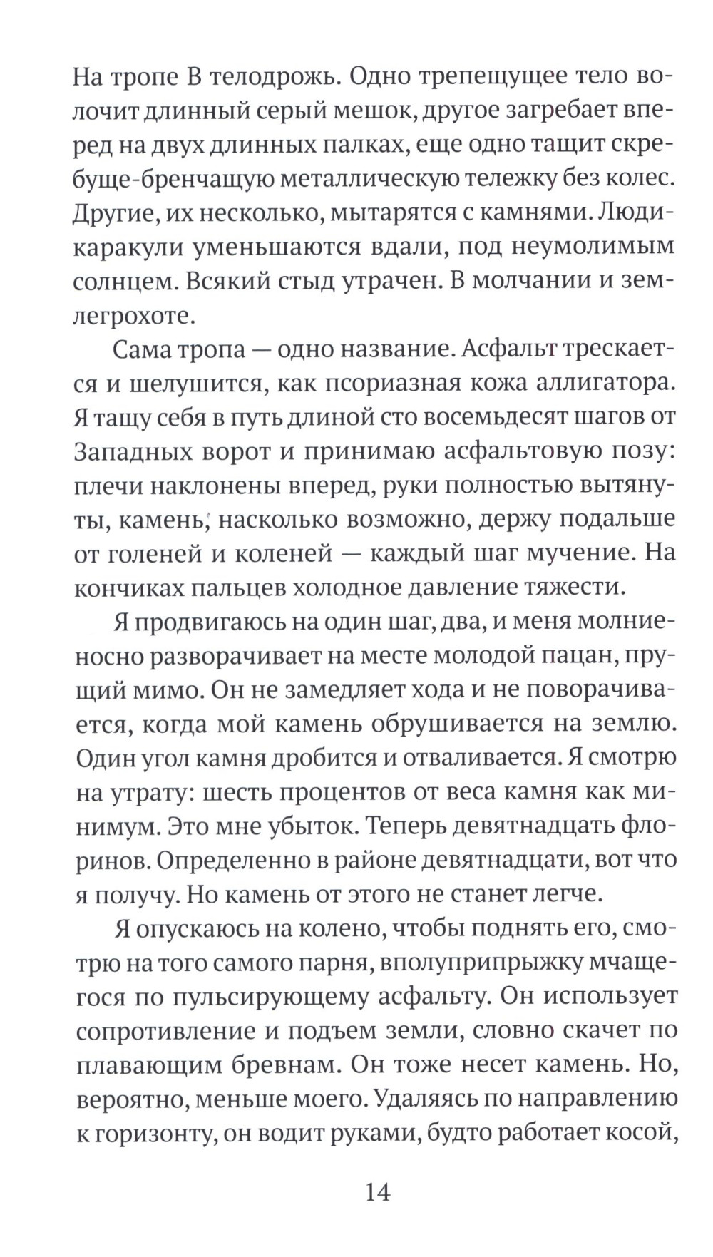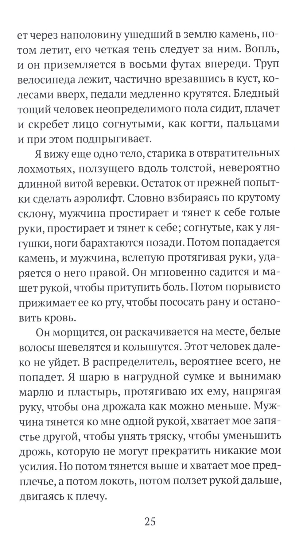 Роман Эвана Дары, известного своими стилистическими экспериментами, погружает читателя в мир локального апокалипсиса. На неком острове происходит стихийное бедствие - начавшееся однажды землетрясение никогда не заканчивается. Бежать с острова невозможно, и люди вынуждены привыкать к новой реальности. Глазами юного героя, который отчаянно силится выжить, изображен бесконечно содрогающийся мир, где не только разрушены все достижения цивилизации и привычные социальные связи, но и утеряна способность к связной речи. Однако точно ли перед нами картины жизни после катаклизма? Падение на каждом шагу, необходимость ворочать массивные камни, чтобы прокормиться, блуждания в лесу, стремление добыть карту и найти оазис устойчивости. Бесконечно меняющаяся действительность диктует человеку свои жестокие условия, но зыбкий проблеск надежды и несгибаемое упорство побуждают раз за разом вставать и продолжать путь.| Издательство | Поляндрия NoAge |