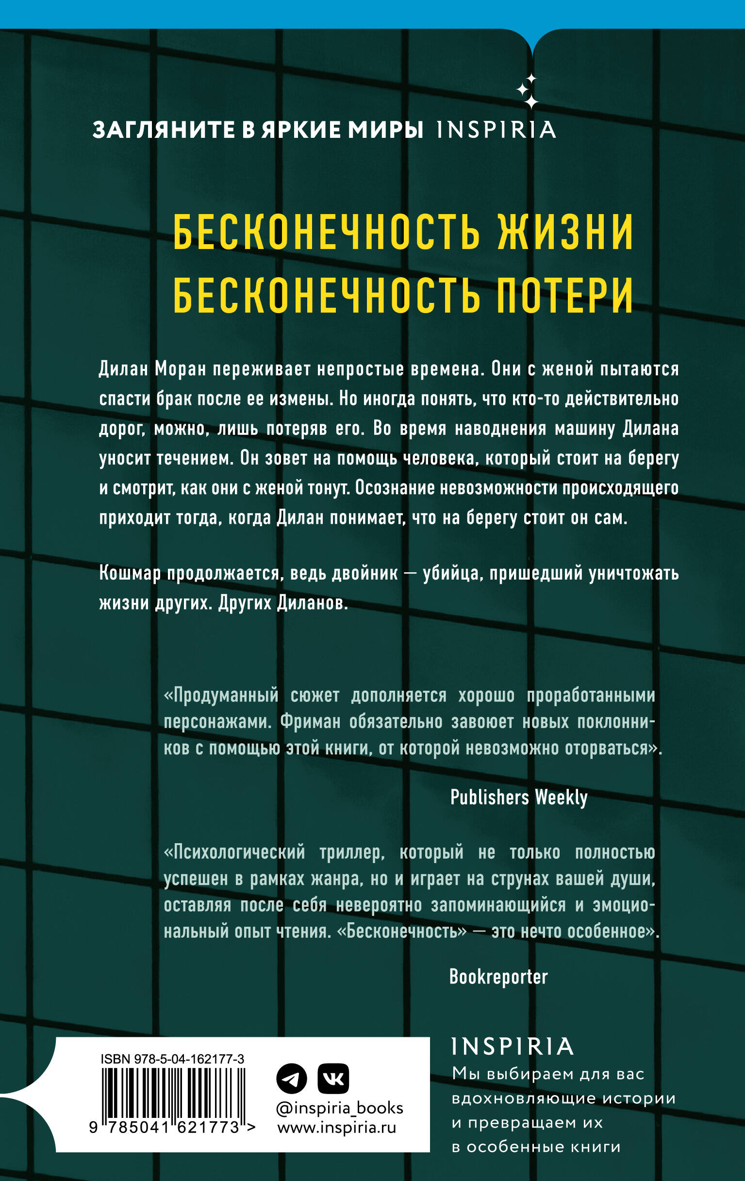 «Психологический триллер, который не только полностью успешен в рамках жанра, но и играет на струнах вашей души, оставляя после себя невероятно запоминающийся и эмоциональный опыт чтения. "Бесконечность" - это нечто особенное». Bookreporter