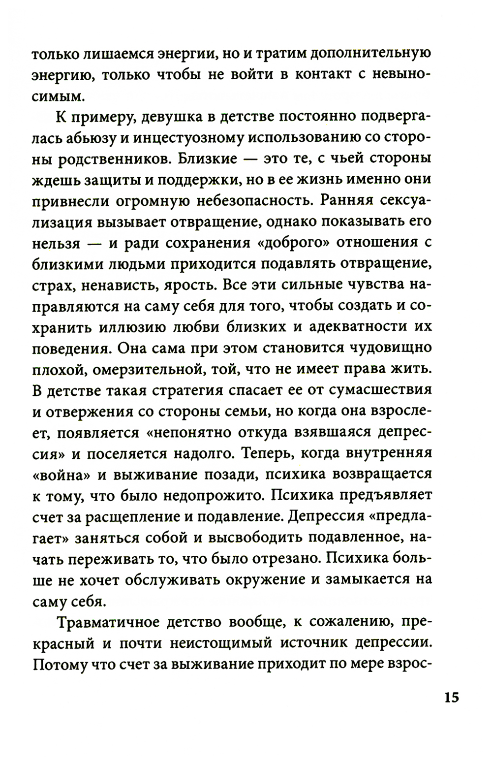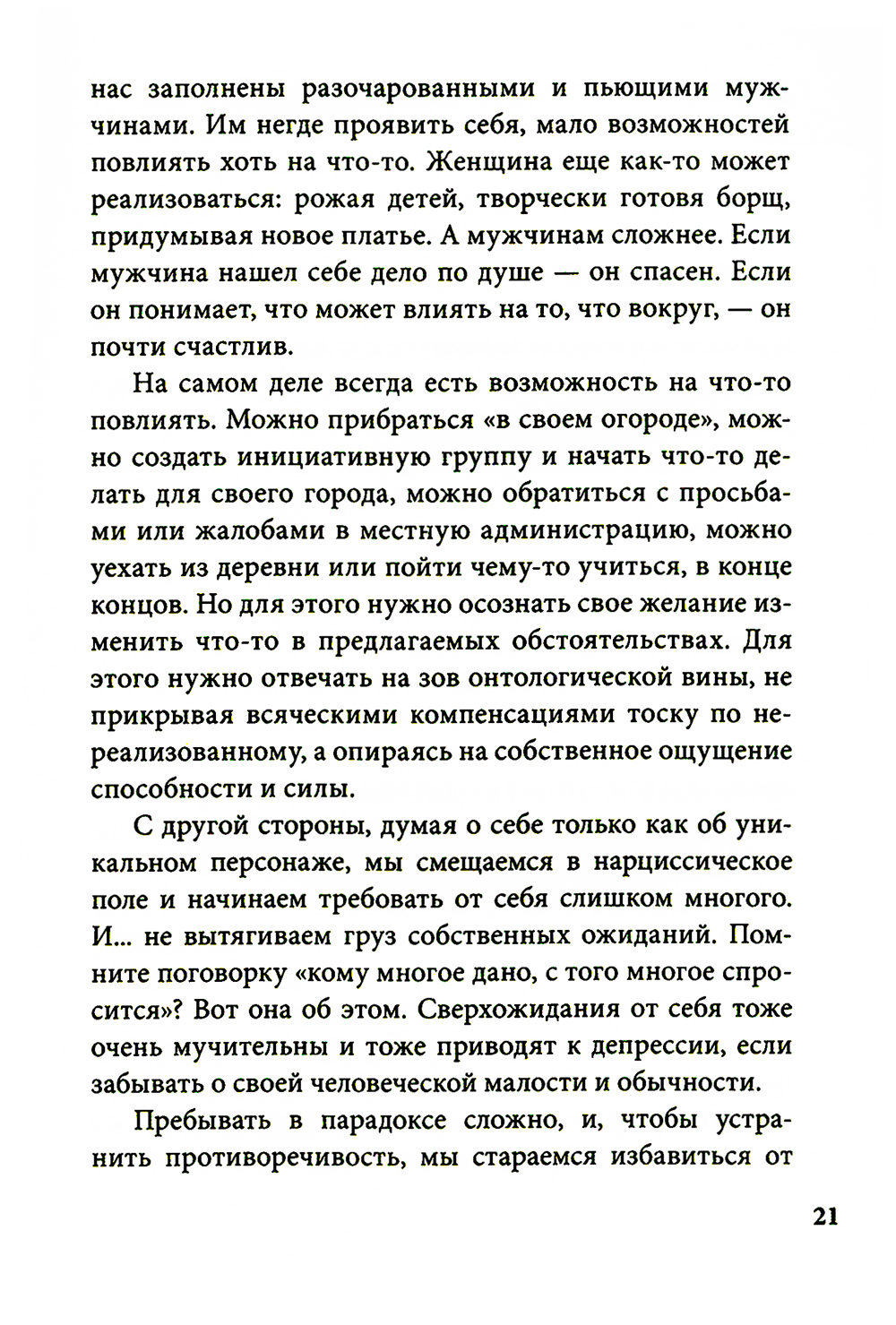 Ирина Млодик знакома многим как опытный психотерапевт, автор множества научно-популярных книг по психологии. Ее отличает умение говорить с читателем о сложных темах максимально ясно и вместе с тем профессионально обоснованно. Эта книга - не исключение. Она представляет собой психологический анализ депрессии: описание ее проявлений, анализ причин и возможных рисков, размышления о необходимости и возможности помощи. Книга адресована широкому кругу читателей, однако будет интересна и профессиональным психологам, поскольку дает обобщенное представление о механизмах возникновения депрессии и стратегиях работы с ней.| Издательство | Генезис |