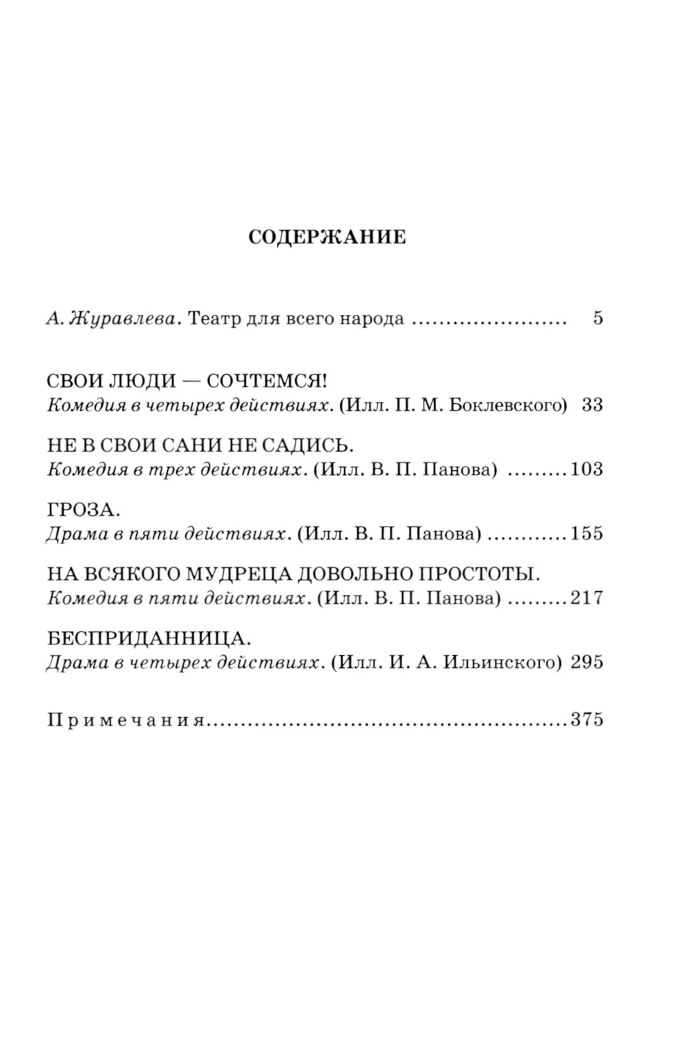 Сюжеты Александра Островского разыгрывали перед зрителем непростые ситуации и всегда разжигали среди публики дискуссии. Но Островский и не был простым драматургом: благодаря многолетним теоретическим изысканиям, он пришел к концепции национального русского театра, а своими драмами заложил фундамент, на котором до сих пор стоит наше сценическое искусство. На бумаге его пьесы смотрятся не менее зрелищно, чем на сцене, благодаря особой глубине проработки речи. Спустя почти два века Островского все так же интересно читать хотя бы потому, что его творчество показывает, как жили люди в кардинально другую эпоху: в своих пьесах он старался точно передать быт провинциальных мест. Каждый персонаж здесь имеет свой колорит и уникальный характер, а обилие основных героев вырисовывает достоверную картину русской общественной жизни, и в этом многоголосье легко закружиться. В книгу вошли: «Свои люди - сочтемся!», «Не в свои сани не садись», «Гроза», «На всякого мудреца довольно простоты» и «Бесприданница».| Издательство | Детская литература |