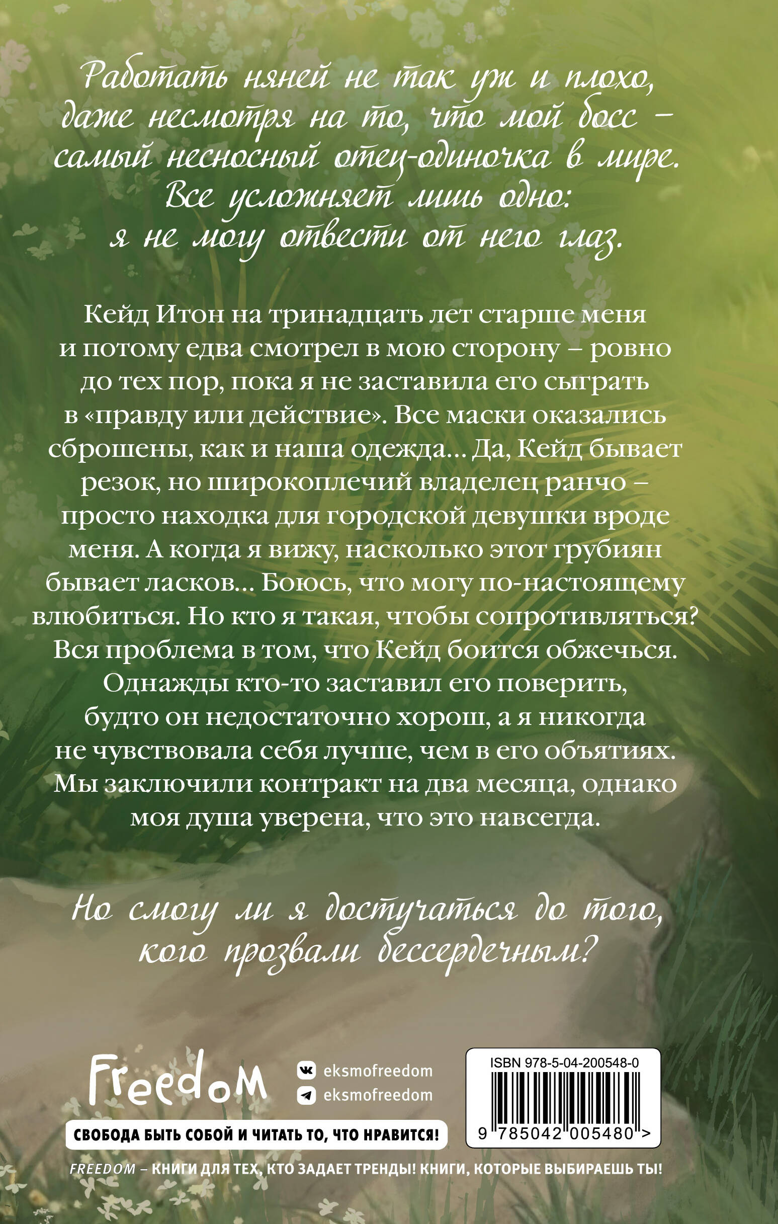 Вторая часть культовой серии книг в антураже ранчо от Элси Сильвер, автора романа «Безупречный»! Международный бестселлер и абсолютный хит зарубежного книжного сообщества! Обложка от художницы Софьи Ферстиной (Haturedaa). Внутри - уникальные сюжетные вклейки на мелованной бумаге с иллюстрациями от популярной художницы Ольги Александровой! Роман о страстной любви в экзотической атмосфере родео! Для любителей историй «hate to love». Приятные персонажи, трогательный сюжет и неординарная ковбойская тема! Работать няней не так уж и плохо, даже несмотря на то, что мой босс - самый несносный отец-одиночка в мире. Все усложняет лишь одно: я не могу отвести от него глаз. Кейд Итон на тринадцать лет старше меня и потому едва смотрел в мою сторону - ровно до тех пор, пока я не заставила его сыграть в «правду или действие». Все маски оказались сброшены, как и наша одежда… Да, Кейд бывает резок, но широкоплечий владелец ранчо - просто находка для городской девушки вроде меня. А когда я вижу, насколько этот грубиян бывает ласков… Боюсь, что могу по-настоящему влюбиться. Но кто я такая, чтобы сопротивляться? Вся проблема в том, что Кейд боится обжечься. Однажды кто-то заставил его поверить, будто он недостаточно хорош, а я никогда не чувствовала себя лучше, чем в его объятиях. Мы заключили контракт на два месяца, однако моя душа уверена, что это навсегда. Но смогу ли я достучаться до того, кого прозвали бессердечным?| Издательство | ООО "Издательство "Эксмо" |