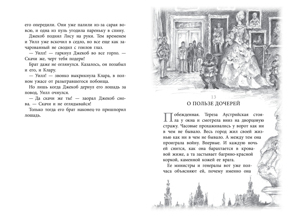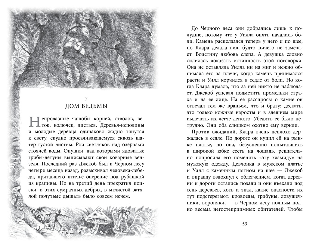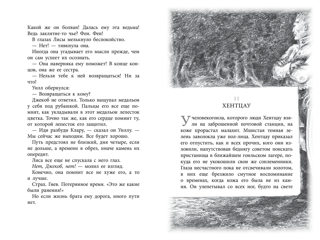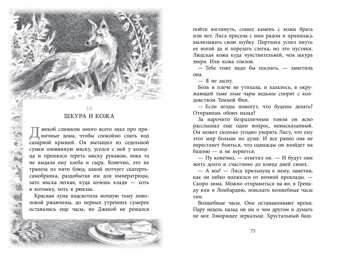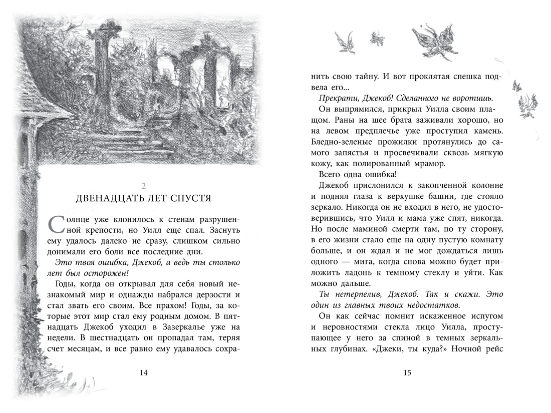 Джон Бесшабашный бесследно исчез, оставив сыновей, Джекоба и Уилла, гадать, что с ним произошло. Только год спустя Джекоб нашел ключ к этой тайне: записку, вложенную в одну из отцовских книг. «Зеркало откроется лишь тому, кто себя не видит», - говорилось там. Разгадав эту загадку, Джекоб нашел дорогу в мир, где живет волшебство. Нет такой сказки, доброй или страшной, которая по ту сторону зеркала не имела бы воплощения. Этот мир Джекоб полюбил куда больше родного. Он сделался там охотником за волшебными сокровищами, стяжал славу и пережил немало удивительного. Но однажды вслед за ним сквозь зеркало шагнул его младший брат Уилл, не подозревавший об опасностях, которые сулит волшебство. И теперь он день за днем превращается в камень - не только телом, но и душой. Говорят, способов избавиться от заклятия Темной Феи, поразившего его, не существует, но Джекоб готов на все, чтобы спасти брата…| Издательство | Азбука |