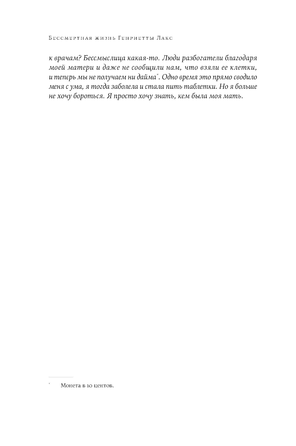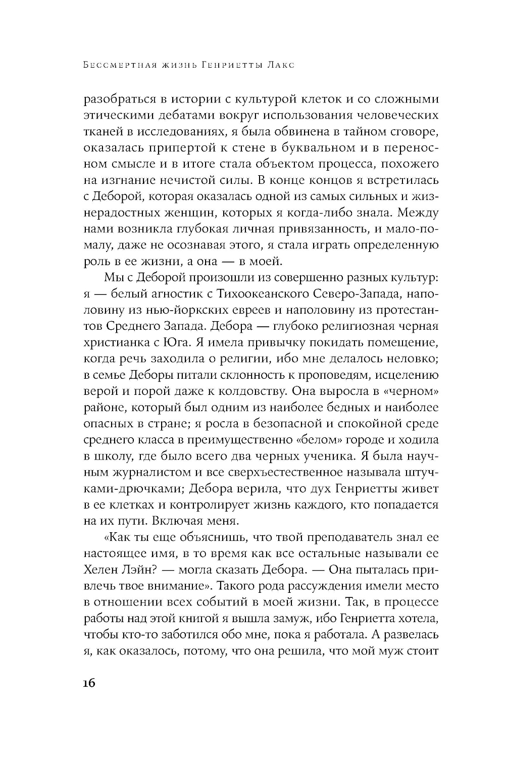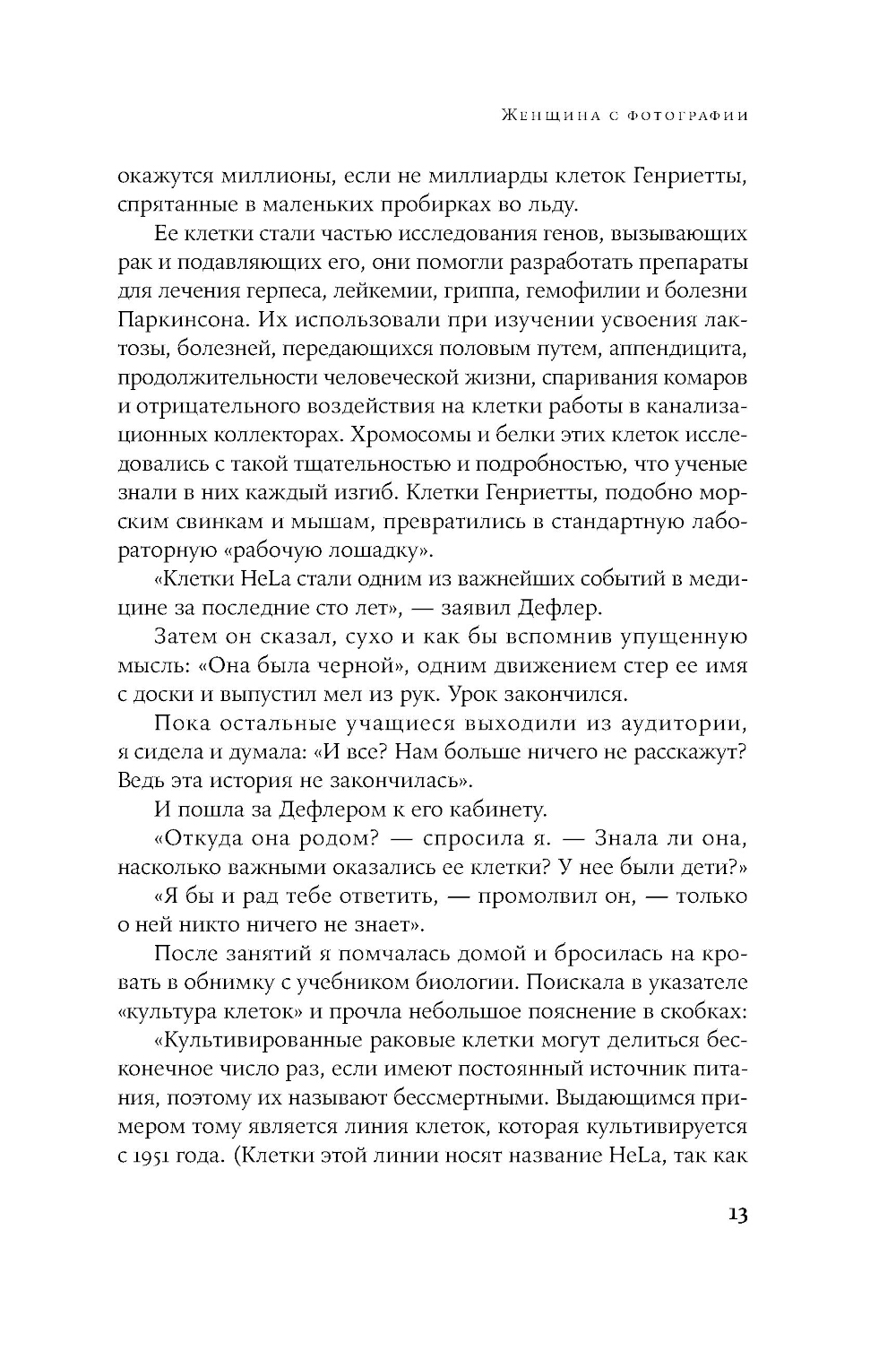 Кто имеет право на наше тело, или его части, или биоматериал, взятый для анализов: мы, врачи, ученые?.. Впервые удалось культивировать «бессмертные» клетки человеческого тела в 1950-х. Это буквально перевернуло всю медицинскую науку. Клетки HeLa помогли разработать вакцины от полиомиелита, раскрыть секреты раковых заболеваний, вирусов и влияния ядерного взрыва; они помогли сделать важные шаги в изучении искусственного оплодотворения, клонирования и составления генетических карт. И неизбежно стали предметом «купли-продажи»: одни богатели, другие и не подозревали, что над ними проводят «опыты». Теперь ученые могли приостанавливать развитие клеток с любой периодичностью на протяжении эксперимента, чтобы сравнить реакцию тех или иных клеток на лекарственный препарат через одну, две или шесть недель. Это книга - драматичная история о судьбе простой женщины, которая подарила миру свои бессмертные клетки, о честных и нечестных врачах, о судебных баталиях, рождении биоэтики. Красивое и драматичное научное исследование, от которого невозможно оторваться.| Издательство | Альпина нон-фикшн |