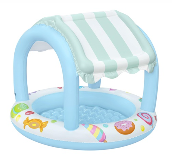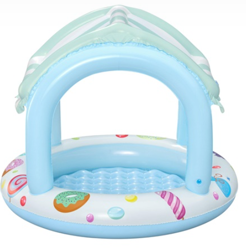 Детский надувной бассейн Bestway 52638 "Sweet Shoppe" с навесом - идеальное решение для малышей в жаркие летние дни. Яркий дизайн с конфетными мотивами и встроенный навес обеспечивают не только весёлое, но и безопасное времяпрепровождение на солнце.