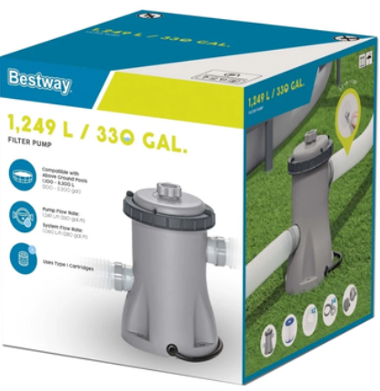Фильтрующий насос Bestway 58381 Flowclear - это надежное и эффективное устройство для очистки воды в надувных и каркасных бассейнах объемом от 1 100 до 8 300 литров. Он обеспечивает циркуляцию и фильтрацию воды, удаляя загрязнения и поддерживая чистоту бассейна.