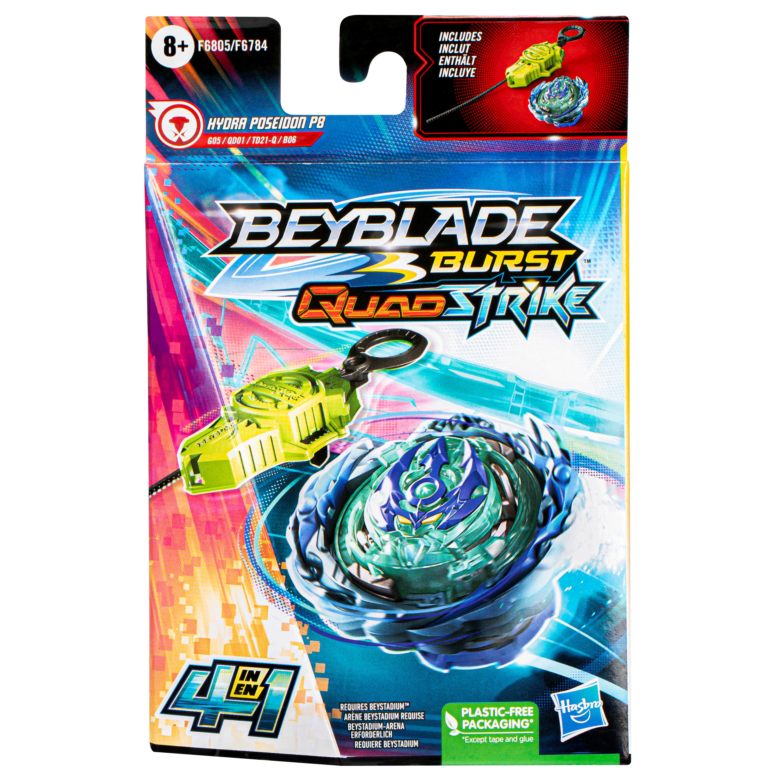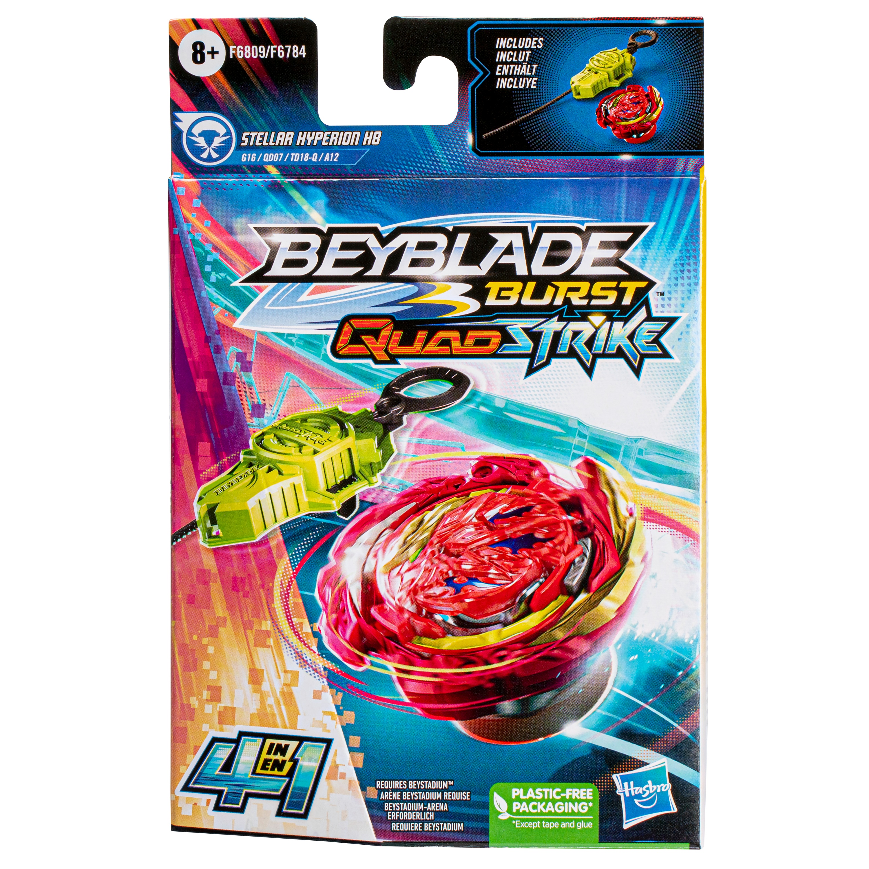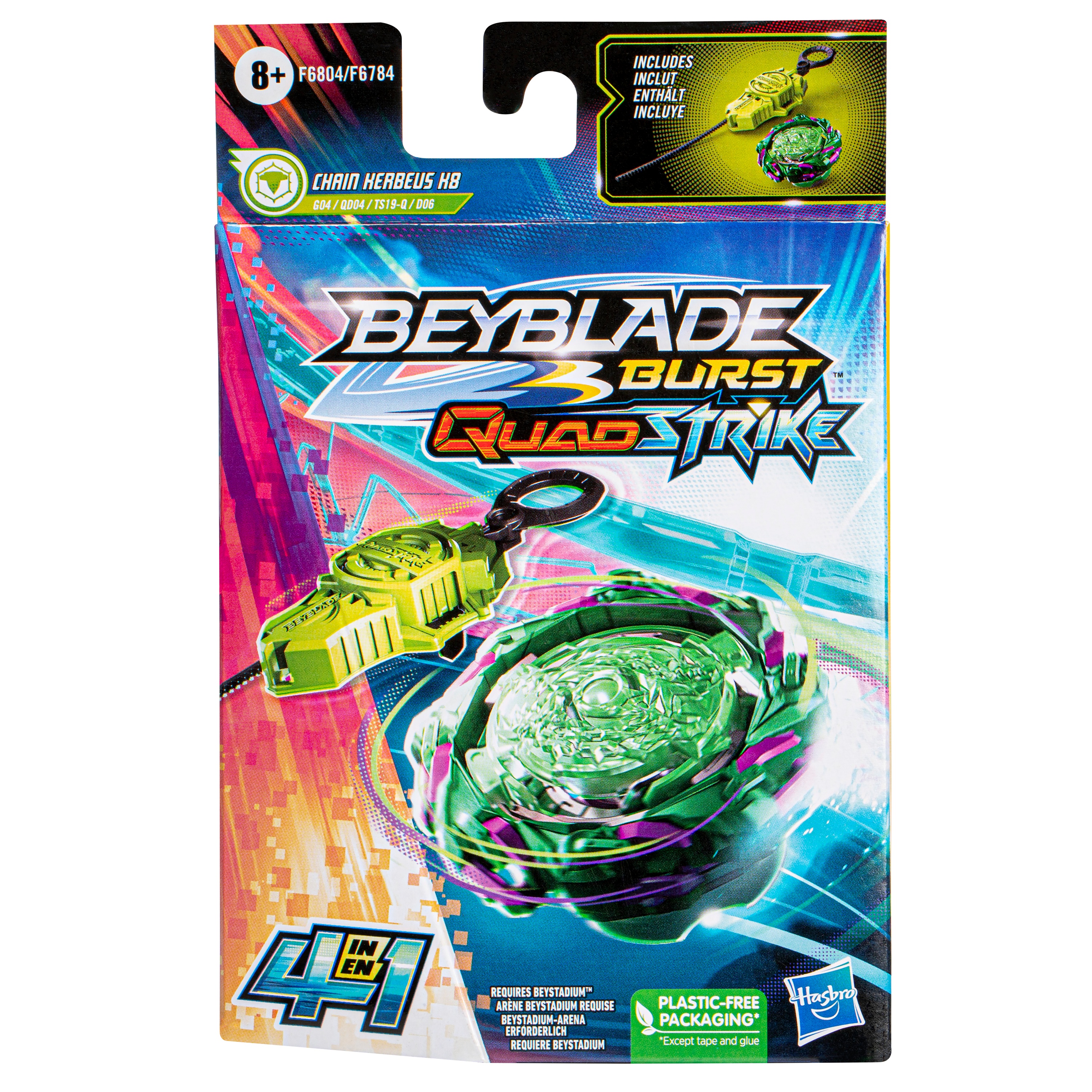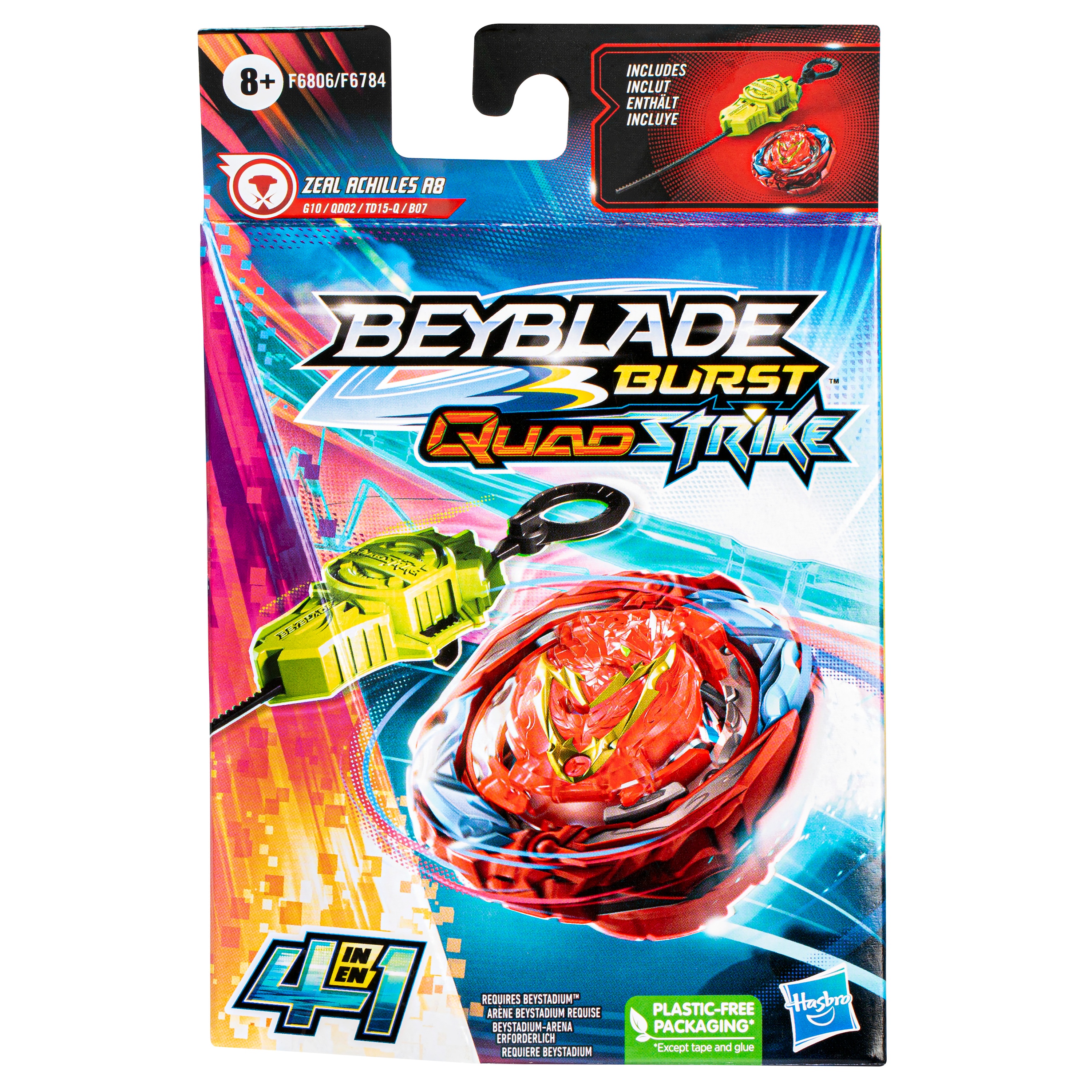 Beyblade Burst QuadStrike Starter Pack открывает новый этап сражений Beyblade. Топы QuadStrike дополнены усовершенствованными наконечниками Armor Tips, предназначенными для усиления боевых характеристик, нанесения более ожесточенных ударов и уничтожения противников в более интенсивных столкновениях. Настройте топ 4 различными способами, чтобы дать вам 4 способа стратегии и настройки, 4 режима для битвы и 4 режима для победы! Оценивайте противника и модифицируйте свой топ, чтобы получить максимальное преимущество в бою.