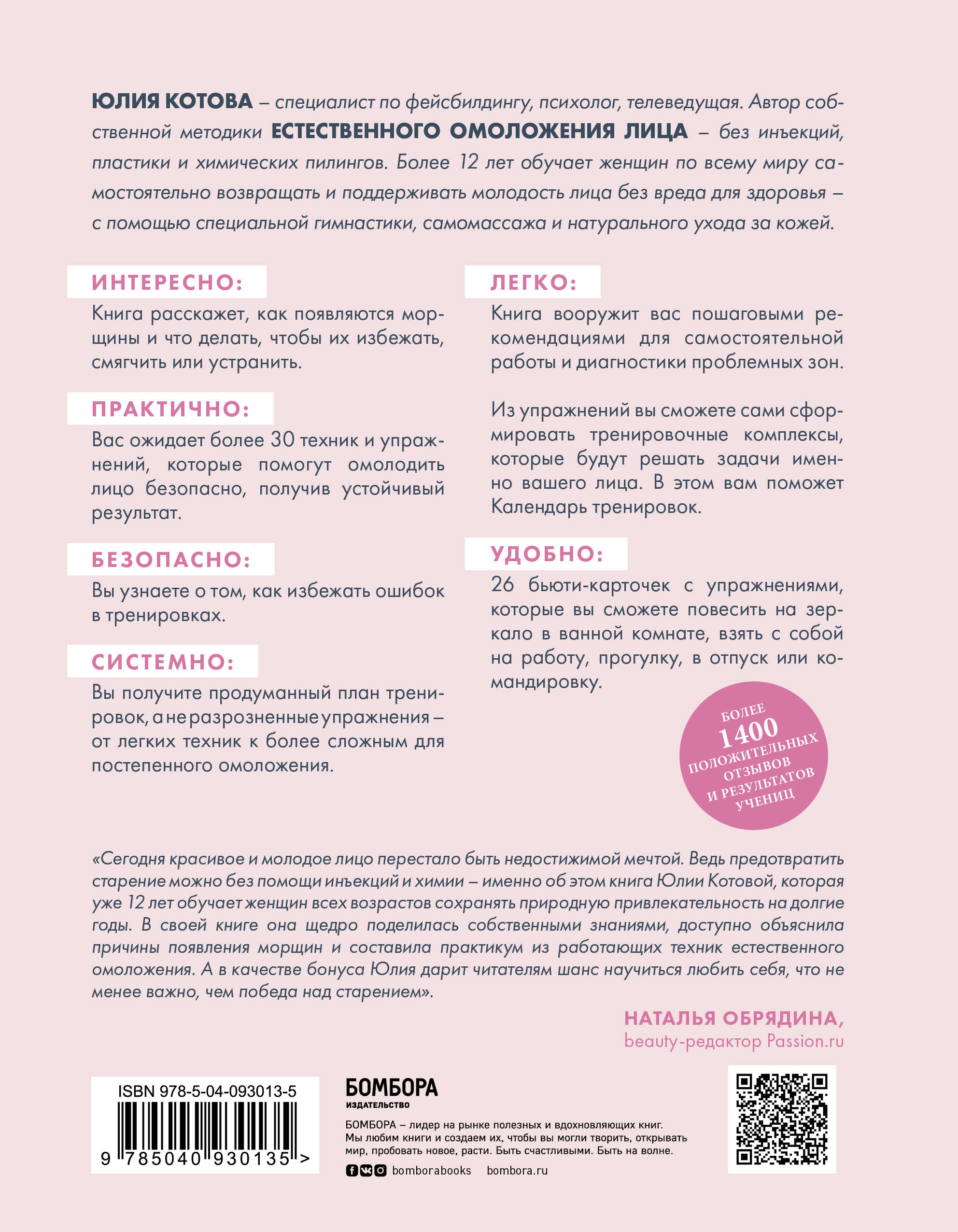 Чистая и гладкая кожа, подтянутый подбородок, упругий овал лица и здоровая шея - и все это без пластической хирургии и химических пилингов! Никакого волшебства, только ресурсы вашего организма и точное следование пошаговым техникам от эксперта по фейсбилдингу и гимнастике лица Юлии Котовой. Пора устроить вашей коже настоящую тренировку, чтобы обрести внешность, о которой вы давно мечтали. Благодаря точным рекомендациям вы сможете самостоятельно определить свои проблемные зоны, подобрать необходимый комплекс упражнений, начиная с простых, переходя к более сложным. Вы избавитесь от морщин и отечностей, добьетесь четкого контура лица, устраните асимметрию и придадите губам объемный и насыщенный вид. Достичь гарантированного результата вам поможет календарь тренировок, а отрывные бьюти-карточки позволят заниматься фейсбилдингом где и когда угодно: дома, в отпуске и даже на работе.| Издательство | ООО "Издательство "Эксмо" |