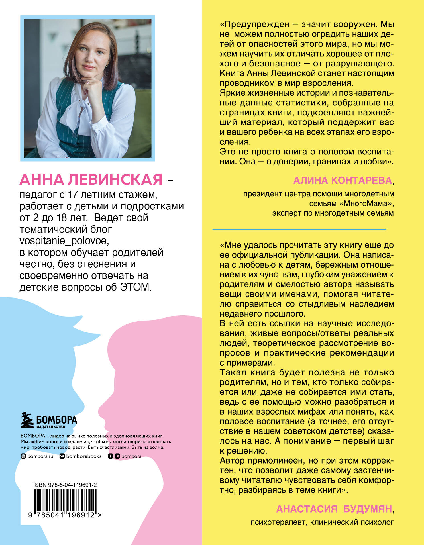Обсуждать интимные темы с детьми сложно. И, тем не менее, нужно. Вам будет проще это сделать с помощью книги «Без секретов», написанной Анной Левинской, педагогом и многодетной мамой. Займитесь просвещением ребенка сами и не ждите, когда за вас это сделает Интернет или его сверстники. Не думайте о том, что будете обсуждать с ним что-то грязное или постыдное. Вы будете разговаривать о вполне естественных вещах, информация о которых может помочь обезопасить ваших сына или дочку и уберечь от их фатальных ошибок. - Как правильно называются половые органы и как они устроены. - Что такое правила интимной гигиены и почему они так важны. - Как правильно ходить в туалет и вести себя в общественных уборных. - Почему возникает эрекция и что такое менструация. - Откуда берутся дети. «Предупрежден - значит, вооружен. Мы не можем полностью оградить наших детей от опасностей этого мира, но мы можем научить их отличать хорошее от плохого и безопасное - от разрушающего. Книга Анны Левинской станет настоящим проводником в мир взросления. Яркие жизненные истории и познавательные данные статистики, собранные на страницах книги, подкрепляют важнейший материал, который поддержит вас и вашего ребенка на всех этапах взросления. Это не просто книга о половом воспитании. Она - о доверии, границах и любви». - КОНТАРЕВА АЛИНА, президент центра помощи многодетным семьям «МногоМама», эксперт по многодетным семьям «Мне удалось прочитать эту книгу еще до ее официальной публикации. Она написана с любовью к детям, бережным отношением к их чувствам, глубоким уважением к родителям и смелостью автора называть вещи своими именами, помогая читателю справиться со стыдливым наследием недавнего прошлого. В ней есть ссылки на научные исследования, живые вопросы/ответы реальных людей, теоретическое рассмотрение вопросов и практические рекомендации с примерами. Такая книга будет полезна не только родителям, но и тем, кто только собирается или даже не собирается ими стать, ведь с ее помощью можно разобраться и в наших взрослых мифах или понять, как половое воспитание (а точнее, его отсутствие в нашем советском детстве) сказалось на нас. А понимание - первый шаг к решению. Автор прямолинеен, но, при этом, корректен, что позволит даже самому застенчивому читателю чувствовать себя комфортно, разбираясь в теме книги». - БУДУМЯН АНАСТАСИЯ, психотерапевт, клинический психолог| Издательство | ООО "Издательство "Эксмо" |