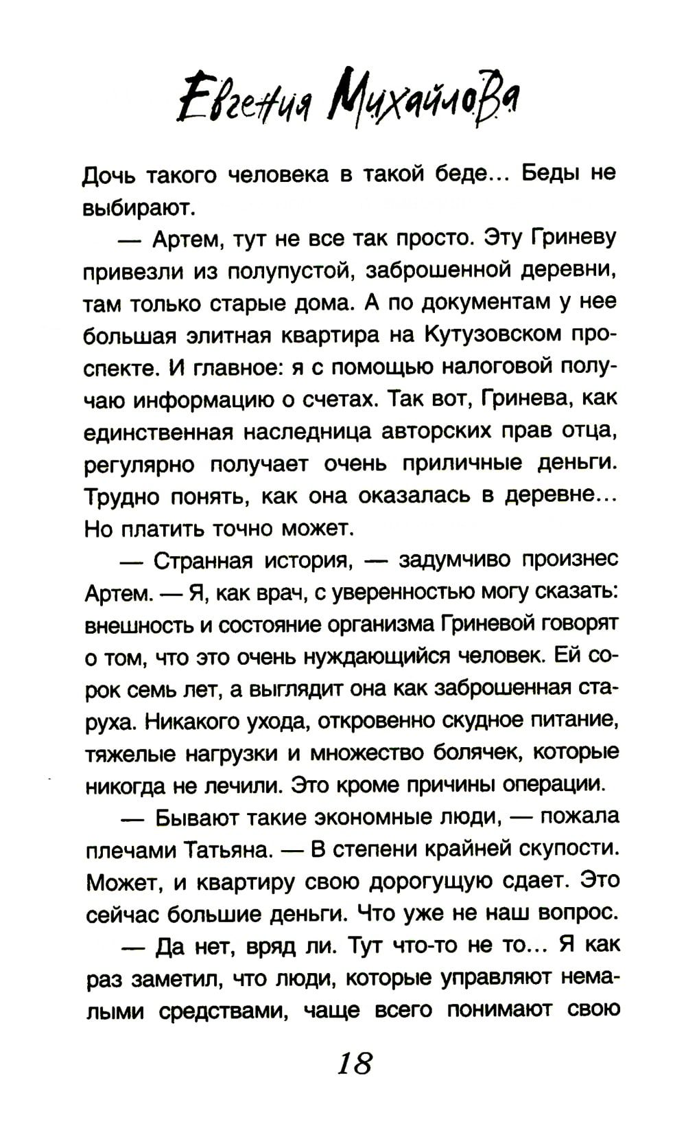 Валентина Гринева перенесла сложную операцию и нуждается в заботе и уходе, но она живет в ужасных условиях. Почему, ведь Валентина - единственная дочь и наследница знаменитого писателя. Узнав правду, оперировавший ее доктор Веригин может спасти сразу несколько жизней... Ева считала себя самой обычной девушкой, пока не познакомилась с Митяем. Богатый бездельник и бедная тусовщица оказались родственными душами и стали деловыми партнерами. Их бизнес феерически успешен, но многим это не нравится... К известной актрисе Регине обращается зоозащитница с просьбой забрать брошенную собаку. Спасая ее, Регина понимает, что с хозяином случилась беда, и нанимает для поисков пропавшего частного детектива Сергея Кольцова...| Издательство | Эксмо |