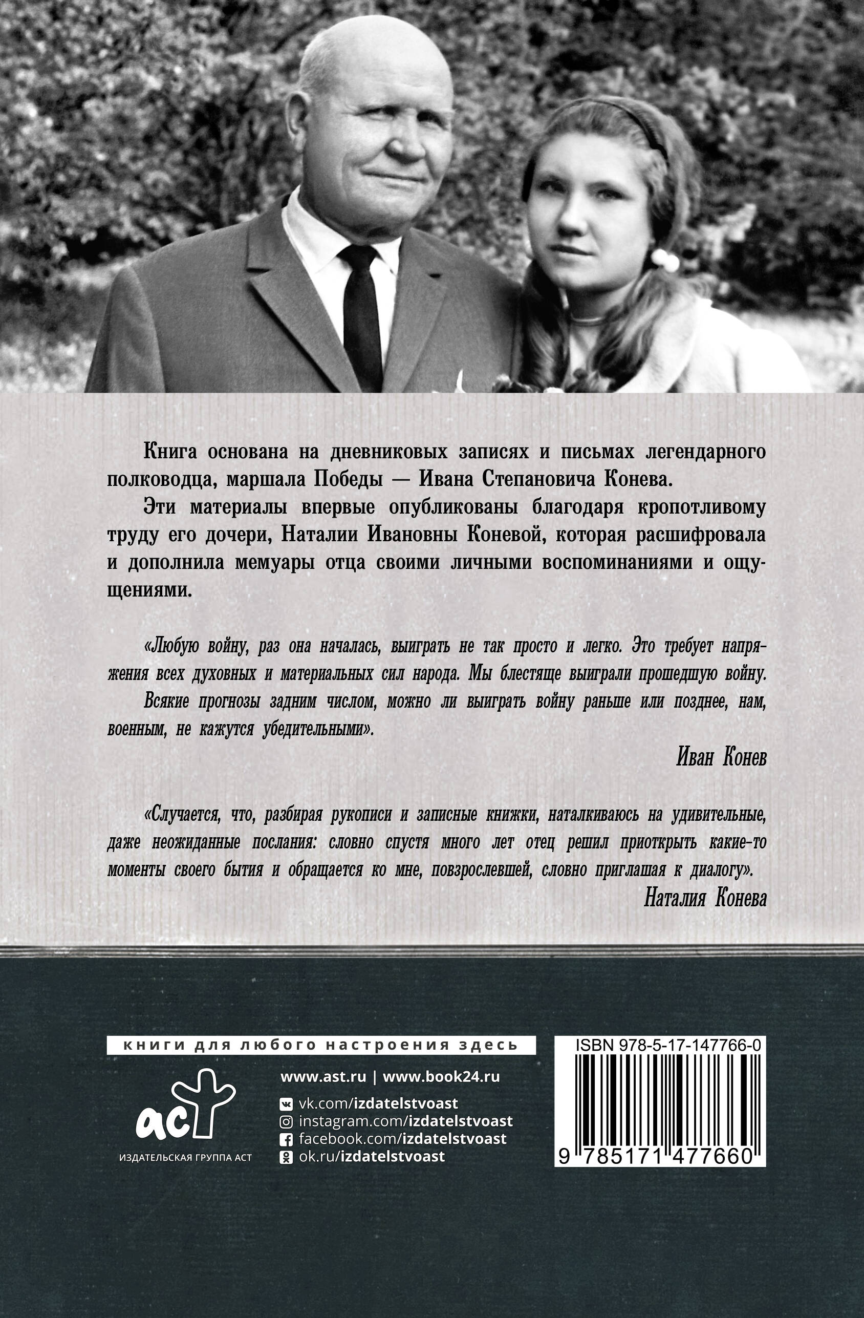 Книга основана на дневниковых записях и письмах легендарного полководца маршала Победы - Ивана Степановича Конева. Эти материалы впервые опубликованы благодаря кропотливому труду его дочери, Наталии Ивановны Коневой, которая расшифровала и дополнила мемуары отца своими личными воспоминаниями и ощущениями.| Издательство | ИЗДАТЕЛЬСТВО "АСТ" |