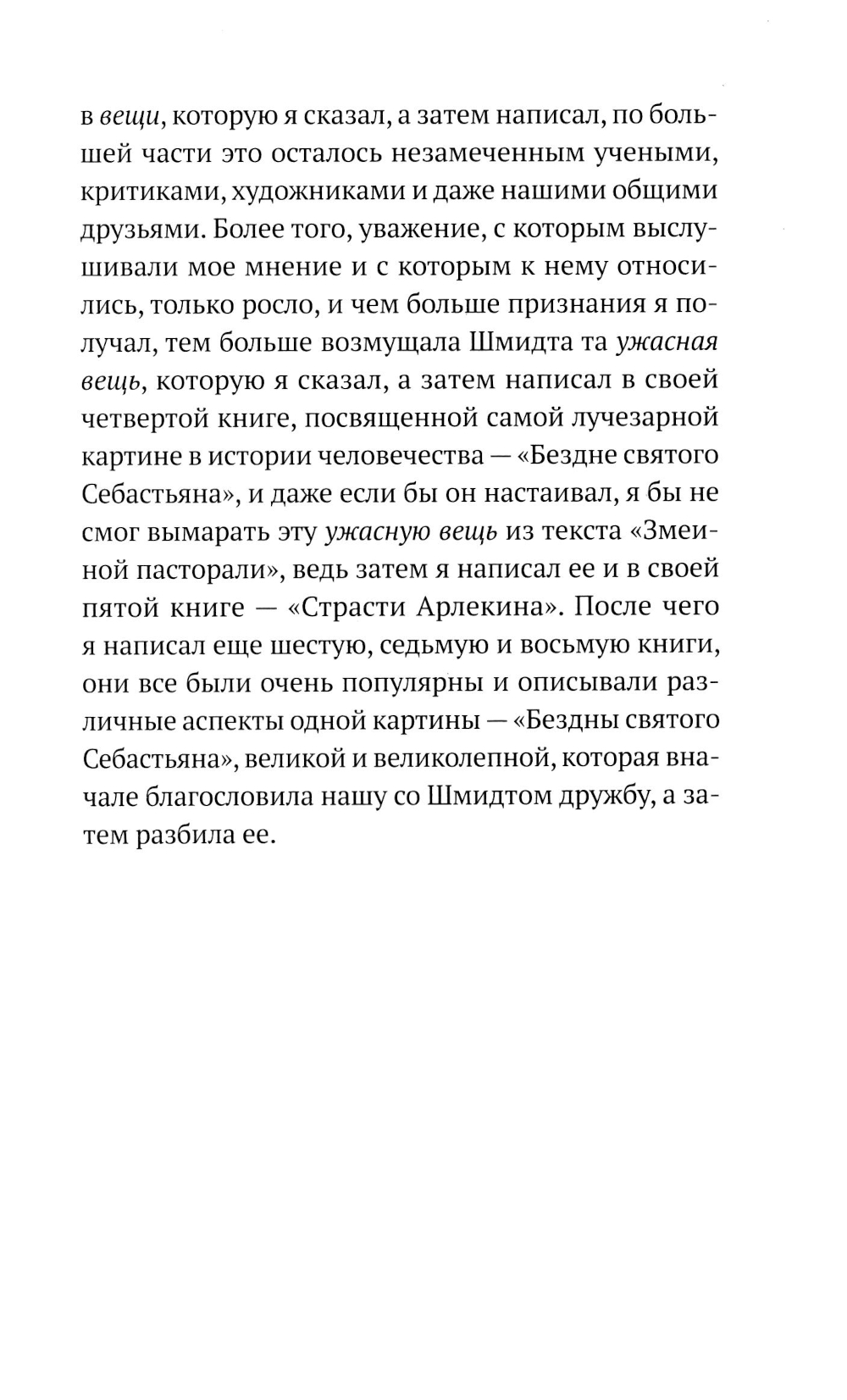 Два художественных критика посвятили большую часть жизни исследованию одной картины - «Бездна святого Себастьяна» нидерландского живописца XVI века Хуго Беккенбауэра. Одержимость полотном стала для обоих как наградой, так и наказанием - картина принесла им профессиональное признание, но также послужила причиной размолвки, расстроившей их некогда крепкую дружбу. Интеллектуальное, подчас полное абсурда путешествие от Оксфорда до Берлина через картинные галереи Европы. Мрачный и в то же время комичный рассказ о непомерных амбициях и неминуемой расплате.| Издательство | Поляндрия NoAge |