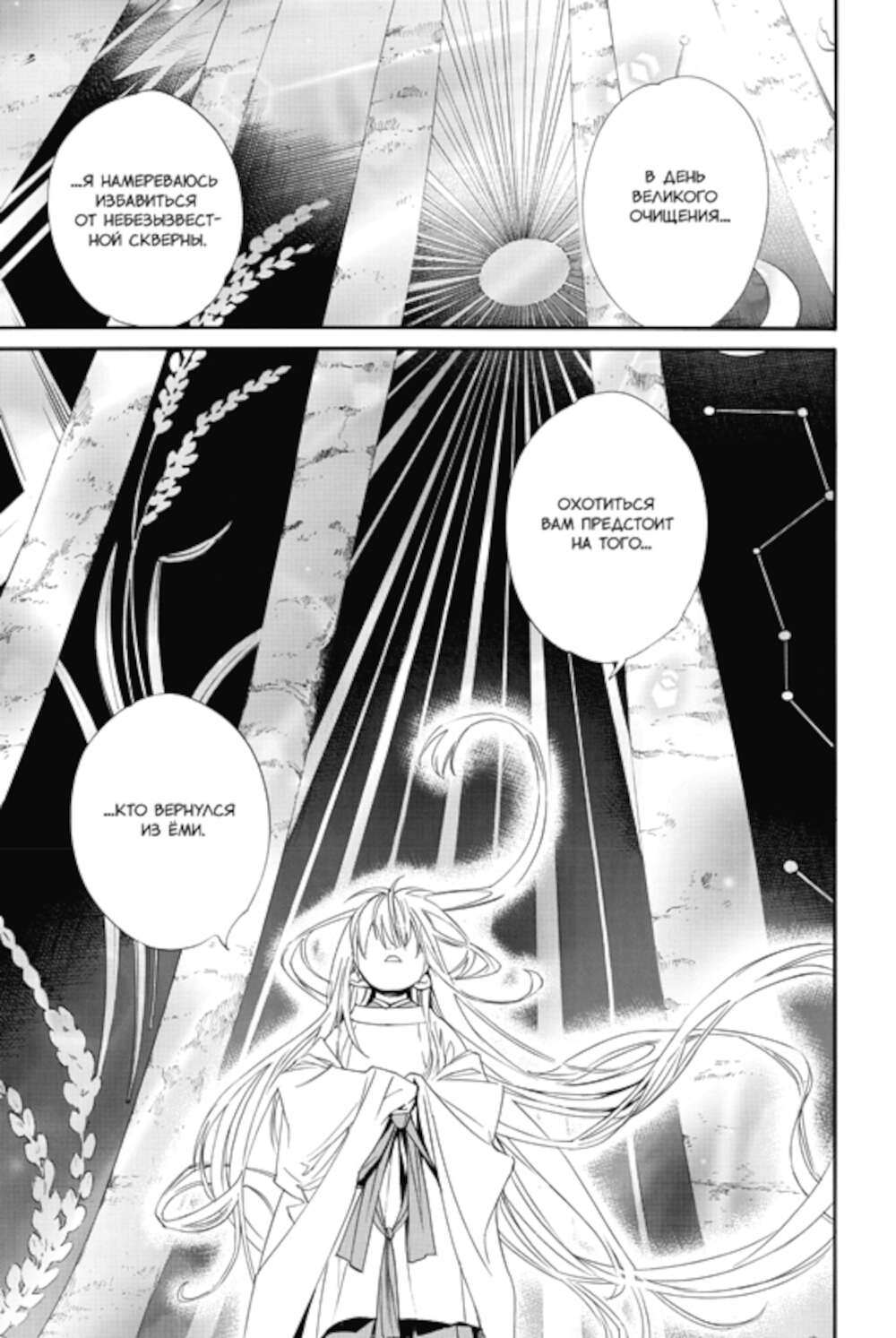 «Благой небосвод» Юкинэ расползается все дальше и дальше и начинает влиять на человеческие поступки и судьбы. В то же время Аматэрасу созывает богов для великой охоты, чтобы уничтожить скверну перед наступлением нового года. Близится рассвет, Ято и Заклинатель сражаются, не жалея сил, надеясь покончить с общим прошлым. Кто же убьет Заклинателя? Аматэрасу? Или Ято?| Издательство | ЭксЭл Медиа |
