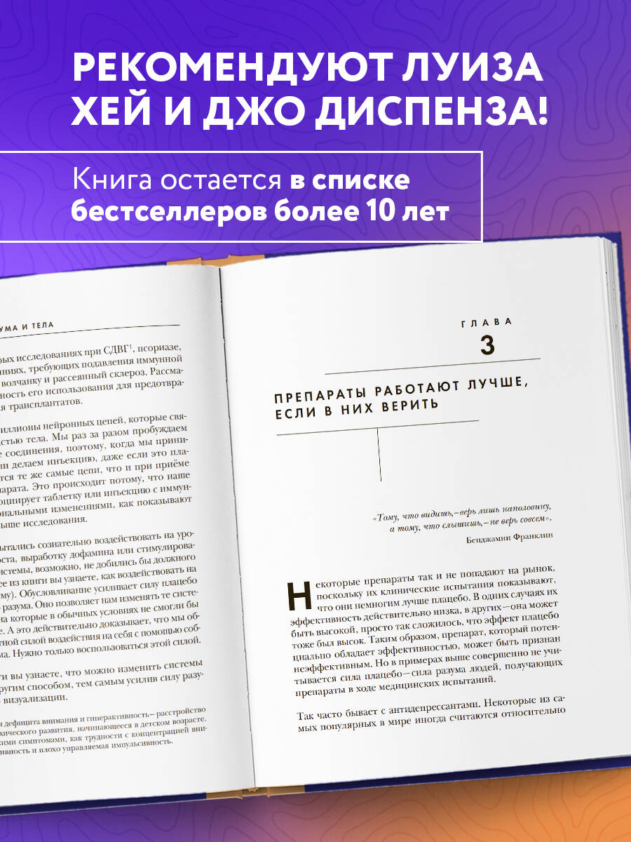 Книга высококвалифицированного ученого, написанная простым и доступным языком, которая демонстрирует невероятные доказательства связи разума и тела. Ни для кого не секрет, что мысли влияют на организм: бесчисленные научные исследования неоднократно подтвердили это. Доктор Дэвид Гамильтон, в прошлом ученый-фармацевт, во время медицинских испытаний новых лекарств лично убедился, насколько тесно связаны разум и тело. Контрольной группе пациентов, участвовавших в испытаниях лекарств, удавалось так же стремительно раз за разом улучшать состояние своего здоровья, как и тем, кто получал медицинские препараты. Пораженный полученными результатами, доктор Гамильтон решил изменить направление своей деятельности и занялся изучением взаимосвязи между разумом и телом. Впервые опубликованная 10 лет назад, эта книга быстро стала бестселлером. В своей работе доктор Гамильтон исследовал влияние визуализации, силы веры и позитивного мышления на организм и показал, как с помощью воображения и психологических процессов можно стимулировать собственные защитные силы организма для борьбы с болезнями, болью и недомоганиями. Книга будет полезна специалистам в области медицины и всем, кто заботится о своем здоровье. Внутри: - оригинальные авторские техники, стимулирующие защитные силы организма; - система работы с воображением, улучшающая работу мышц; - усиление воздействия медикаментозных препаратов. «Эта книга убедит вас, что исцеление одной лишь силой мысли не просто возможно, - это реальность!» - Доктор Джо Диспенза, автор бестселлеров «Сила подсознания», «Сам себе плацебо» и др.| Издательство | ООО "Издательство "Эксмо" |