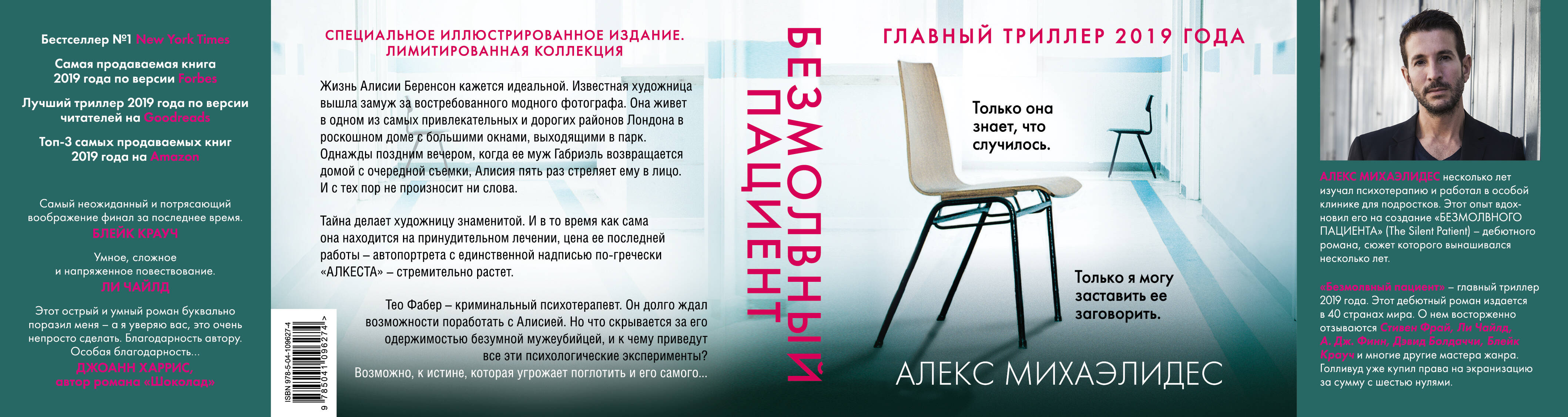 Бестселлер № 1 New York Times. Самая продаваемая книга 2019 года по версии Forbes. Лучший триллер 2019 года по версии читателей на Goodreads. Топ-3 самых продаваемых книг 2019 года на Amazon. «Безмолвный пациент» - главный триллер 2019 года. Этот дебютный роман издается в 40 странах мира. О нем восторженно отзываются Стивен Фрай, Ли Чайлд, А.Дж. Финн, Дэвид Болдаччи, Блейк Крауч и многие другие мастера жанра. Голливуд уже купил права на экранизацию за сумму с шестью нулями. Сам Алекс так рассказывал в одном из интервью о том, как у него сложился замысел романа: «В моем случае все получилось в точности как у Тео, основного рассказчика в книге: "Настоящая причина, по которой я ввязался в психотерапию, была сугубо эгоистическая. Я хотел помочь самому себе". Решая собственные проблемы, я заинтересовался психотерапией. Изучал групповые методики. Затем - индивидуальные. А позже моя сестра - сама психиатр - устроила меня на неполный рабочий день в отделение для подростков. Для меня это было невероятным событием. Я очень многое узнал. Это был формирующий, изменяющий жизнь опыт». «Я люблю его так сильно, так сильно, что это меня пугает. Иногда мне кажется… Нет. Такое я писать не стану». (Из дневника Алисии Беренсон.) «Предположительно, миссис Алисия Беренсон убила собственного мужа». (Из сводки полиции Лондона.) АЛИСИЯ Художница Алисия Беренсон ведет дневник. Для нее это - отдушина, возможность выговориться. А еще - способ показать своему любимому мужу, что в их жизни все прекрасно. Сама мысль о том, чтобы расстроить Габриэля или причинить ему боль - невыносима. Но однажды вечером Алисия пять раз стреляет ему в лицо, и с тех пор не произносит ни слова. Ее исповедью становится… картина. Автопортрет, в левом нижнем углу которого Алисия нанесла на холст одно-единственное слово, написанное по-гречески: «АЛКЕСТА»*. ТЕО Эксперт-психотерапевт Тео Фабер убежден - он сможет помочь Алисии там, где все остальные врачи потерпели неудачу. Одержимый расследованием ее преступления, он понимает: молчание Алисии гораздо многозначительнее, чем кажется. Но захочет ли Тео услышать правду, если пациентка заговорит? *Алкеста - героиня древнегреческого мифа, согласившаяся пожертвовать собственной жизнью, чтобы спасти своего мужа. «Очень незаурядно». - Дэвид Болдаччи «Идеальный триллер». - А. Дж. Финн «Гениально». - Стивен Фрай «Самый неожиданный и потрясающий воображение финал за последнее время». - Блейк Крауч «Умное, сложное и напряженное повествование». - Ли Чайлд «Этот острый и умный роман буквально поразил меня, - а я уверяю вас, это очень непросто сделать. Благодарность автору. Особая благодарность…» - Джоанн Харрис, автор романа «Шоколад»| Издательство | ООО "Издательство "Эксмо" |