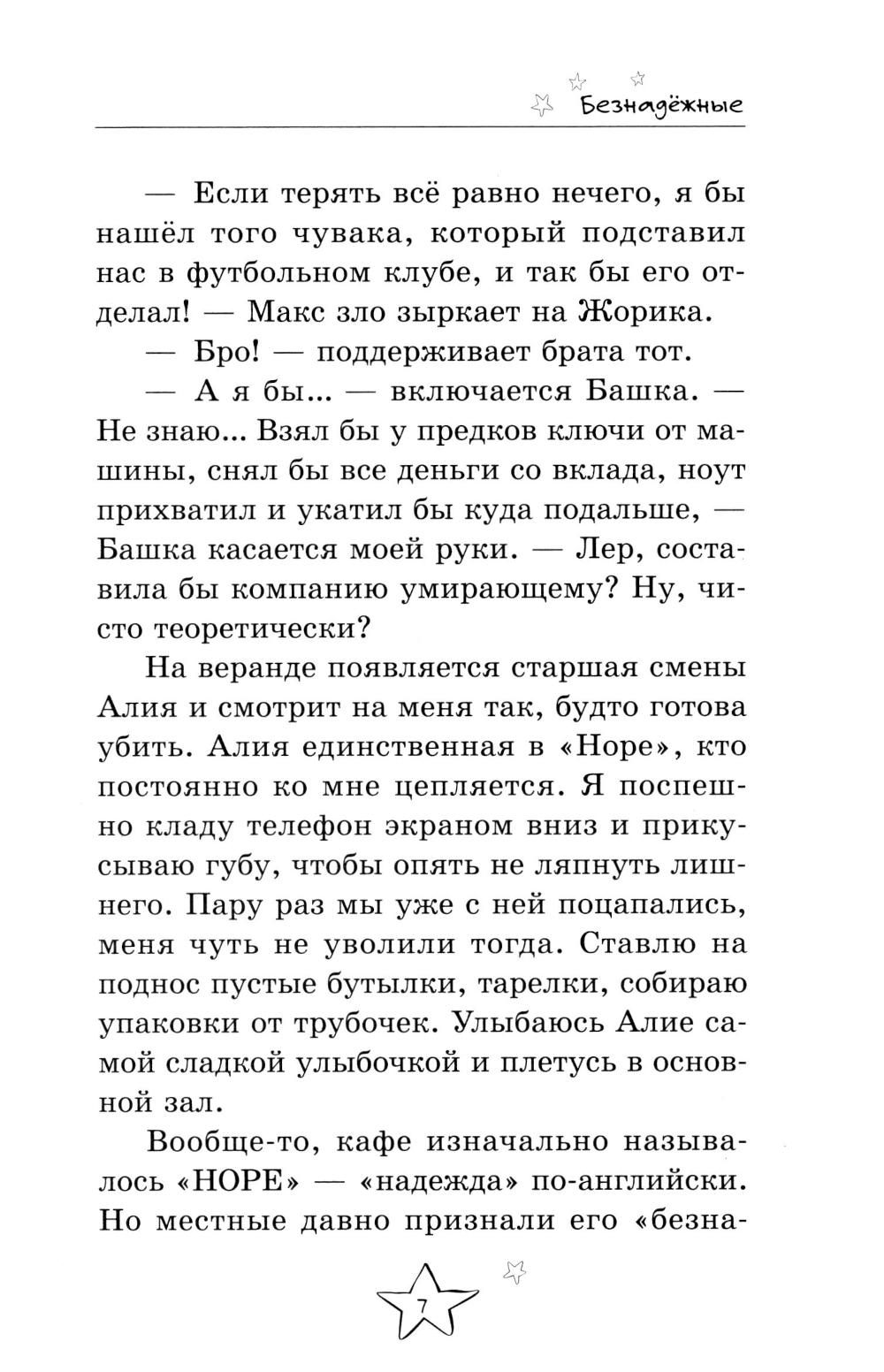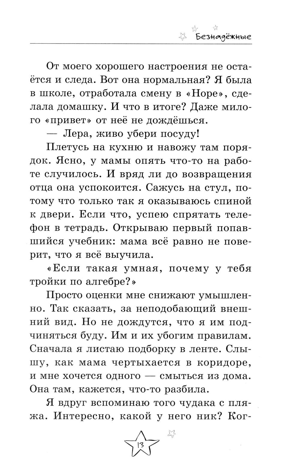 Лере пятнадцать лет, она яркая, взрывная и ненавидит какие-либо правила. Вместе с друзьями-неформалами - такими же бунтарями, как и она сама, - Лера отвергает скучный мир и его унылые установки. Но однажды привычный уклад рушится и её бунтарский мир сталкивается с загадкой: Егор, идеальный парень, тратит лето на... уборку заброшенного пляжа. Зачем? Лера решает докопаться до правды - и оказывается втянута в историю, где друзья требуют выбрать: «Мы или он». Правда о Егоре может всё изменить... Но даже в самой безнадёжной ситуации есть выход.| Издательство | Феникс |