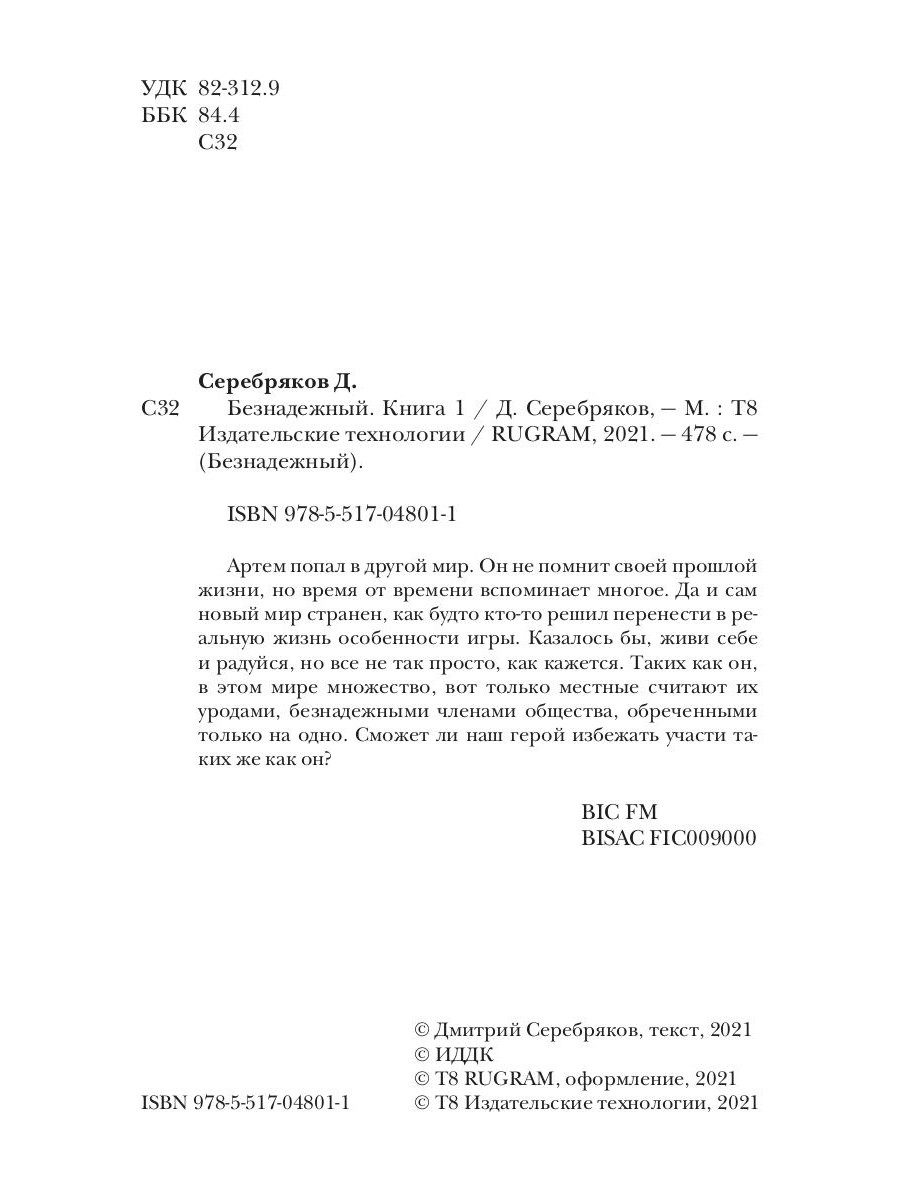 Артем попал в другой мир. Он не помнит своей прошлой жизни, но время от времени вспоминает многое. Да и сам новый мир странен, как будто кто-то решил перенести в реальную жизнь особенности игры. Казалось бы, живи себе и радуйся, но все не так просто, как кажется. Таких как он, в этом мире множество, вот только местные считают их уродами, безнадежными членами общества, обреченными только на одно. Сможет ли наш герой избежать участи таких же как он?| Издательство | Т8 RUGRAM |