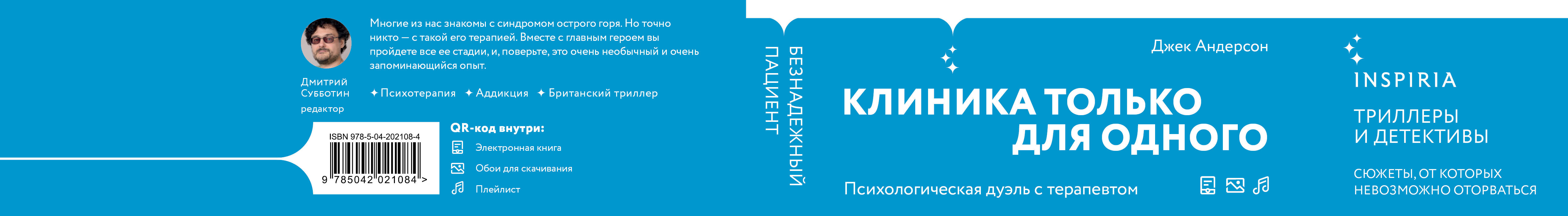 Любовь - это болезнь? И можно ли «излечить» человека от любви с помощью медицины? Этот атмосферный психологический триллер раскрывает природу человеческих чувств, таких как любовь, горе утраты, вина… И показывает, что бывает с теми, кто пытается от них избавиться. Когда его любимая жена внезапно умерла, Артур Мейсон чуть не сошел с ума. Теперь он постоянно думает о самоубийстве. Патологическое горе захватило его с головой, изменило психику, превратило в другого человека. Традиционная психотерапия не помогает. Но существует альтернативная… Доктор Элизабет Коделл - уникальный специалист. Она владеет загадочной клиникой на уединенном острове у берегов Уэльса, где по собственной методике исцеляет самых безнадежных пациентов. В этой клинике строгие правила: здесь может находиться лишь один пациент. Услуги доктора Коделл астрономически дороги, но стоят того. Убежденный близкими, Артур ступает на землю острова, чтобы снова стать самим собой. И не подозревает, что здесь ему придется противостоять не только своему горю… ____________________________________________________________ «Завораживающий дебют». - Daily Mail «Оригинальный сюжет, захватывающий с первой страницы». - Sunday Post «Умно, остро, закрученно. Образец психологического триллера». - Сара Мурхэд «Эта прекрасно написанная книга полностью поглощает, окутывает гнетущей атмосферой неумолимо надвигающейся угрозы». - Мартин Уэйтс «Есть порядочно триллеров, которые заставляют лихорадочно листать страницы, но немногие из них не отпускают тебя после того, как прочитана последняя. Джек Андерсон написал роман в той же степени глубокомысленный и человечный, в какой увлекательный и захватывающий. Талант, за развитием которого стоит следить». - Джессика Мур
