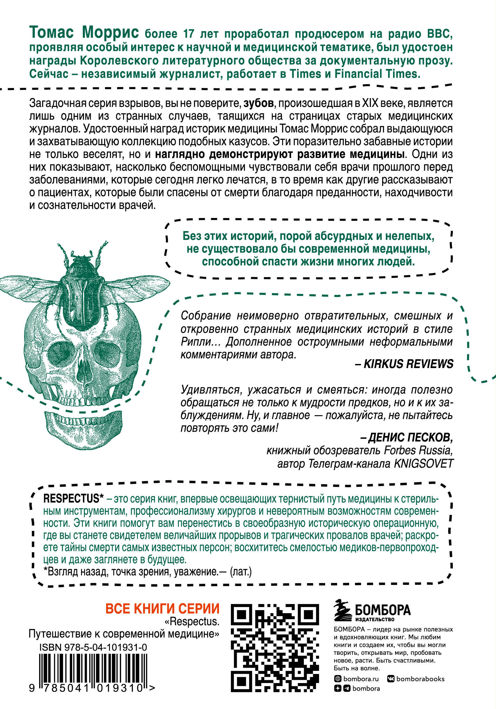 Об авторе: Томас Моррис более 17 лет проработал продюсером на радио BBC, проявляя особый интерес к научной и медицинской тематике, был удостоен награды Королевского литературного общества за документальную прозу. Сейчас - независимый журналист, работает в Times и Financial Times. Автор книги «Дело сердца. 11 ключевых операций в истории кардиохирургии». Это юмористическое собрание медицинских случаев и историй о странных методах лечения уникальным образом описывает ушедшую эпоху во всей ее причудливости. Томас Моррис представляет одну из наиболее выдающихся и захватывающих коллекций курьезов из всех, что когда-либо собирали. Интересные случаи: - О таинственных заболеваниях (например, о женщине с Род-Айленда, которая мочилась через нос). - Об ужасающих операциях (в 1781 году французский солдат в Индии самостоятельно удалил себе камень из мочевого пузыря). - О небылицах (ребенке-амфибии из Чикаго, который якобы мог плавать под водой полчаса). - О несчастливых обстоятельствах (мальчик, который загоготал, как гусь, после того как проглотил птичью гортань) - и о множестве других чудес. Отзывы: «Собрание "неимоверно отвратительных, смешных и откровенно странных" медицинских историй в стиле Рипли… дополненное остроумными неформальными комментариями автора». - Kirkus Reviews «Томас Моррис рассказывает о множестве забавных, загадочных и мрачных медицинских случаев, взятых из газет, журналов и учебников 18-19 вв. С помощью красочных примеров автор искусно передает разочарования, сомнения, необоснованную уверенность и частую беспомощность медиков донаучной эпохи». - Wall Street Journal «Эта серия примеров из медицинской истории напомнит вам о том, что мы вовсе не так умны, как нам кажется. Моррис привел фотографии старых документов и цитаты врачей прошлого, чтобы сделать книгу правдоподобной, обоснованной и… очень забавной». - Science Friday, Лучшие научные книги 2018| Издательство | ООО "Издательство "Эксмо" |