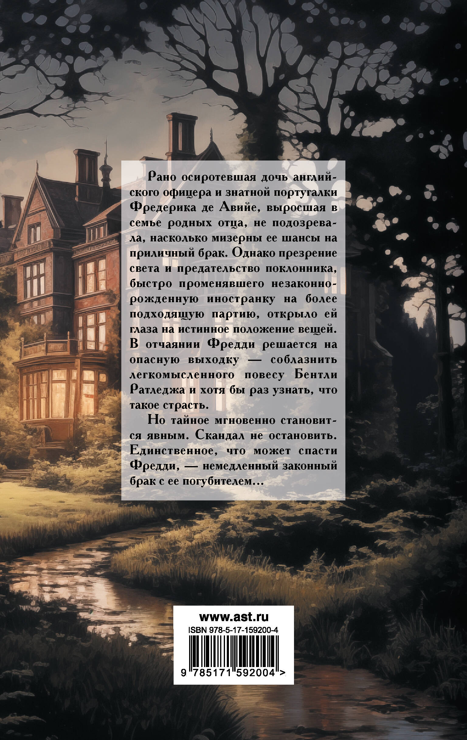 Рано осиротевшая дочь английского офицера и знатной португалки Фредерика де Авийе, выросшая в семье родных отца, не подозревала, насколько мизерны ее шансы на приличный брак. Однако презрение света и предательство поклонника, быстро променявшего незаконнорожденную иностранку на более подходящую партию, открыло ей глаза на истинное положение вещей. В отчаянии Фредди решается на опасную выходку - соблазнить легкомысленного повесу Бентли Ратледжа и хотя бы раз узнать, что такое страсть. Но тайное мгновенно становится явным. Скандал не остановить. Единственное, что может спасти Фредди, - немедленный законный брак с ее погубителем...| Издательство | Издательство "АСТ" |