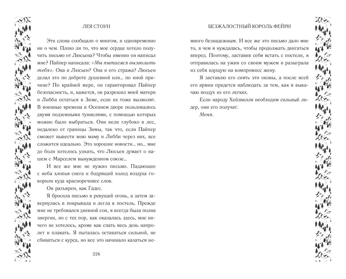 Продолжение серии «Короли Авальера» от автора бестселлеров USA Today Леи Стоун! Это роскошно продуманный мир, где есть драконий народ, эльфы, фейри и другие магические существа. Потрясающее соединение магии, романтики и экшена под одной обложкой! Каждая книга серии - самостоятельная законченная романтическая история, но все герои из одного мира! Сенсация ТикТок 2023 в жанре романтического фэнтези на Amazon! «Безжалостный король фейри» - это трогательная история любви двух родственных душ: сильной человеческой девушки и жестокого короля фейри, погрязшего в тайнах прошлого! История о том, как за фасадом жестокости может скрываться поистине доброе и любящее сердце! Люсьен Торн - коварнейший из монстров во всем Торнгейте. Будучи королем Зимы, он правит нашими землями железной хваткой и ледяным, лишенным всякого сочувствия, сердцем. И мой отец только что сообщил, что я обещана ему в жены. Как принцесса Осени, я обязана выйти замуж за того, кого выберет для меня отец, но даже долг не заставит меня провести остаток жизни с кем-то вроде Люсьена. И все же, чем больше времени я нахожусь с этим таинственным юношей, тем сильнее сомневаюсь в правдивости слухов о нем. Познакомившись с ним поближе, я начинаю раскрывать тайны его семьи. Историю, объясняющую его безжалостные поступки… И которую планирую стереть, если хочу спокойно прожить свою жизнь в Зимнем дворце. Как бы отчаянно я ни желала ненавидеть Люсьена и все, что он сотворил с нашим королевством, я не могу отречься от собственных чувств… Потрясающее соединение магии, романтики и экшена под одной обложкой! Каждая книга серии - самостоятельная законченная романтическая история, но все герои из одного мира! Сенсация ТикТок 2023 в жанре романтического фэнтези на Amazon! «Я влюблена в эту серию. Каждый роман - это заряд адреналина и азарта. Каждая книга наполнена романтикой, опасностями и бесконечными приключениями». - Amazon| Издательство | ООО "Издательство "Эксмо" |
