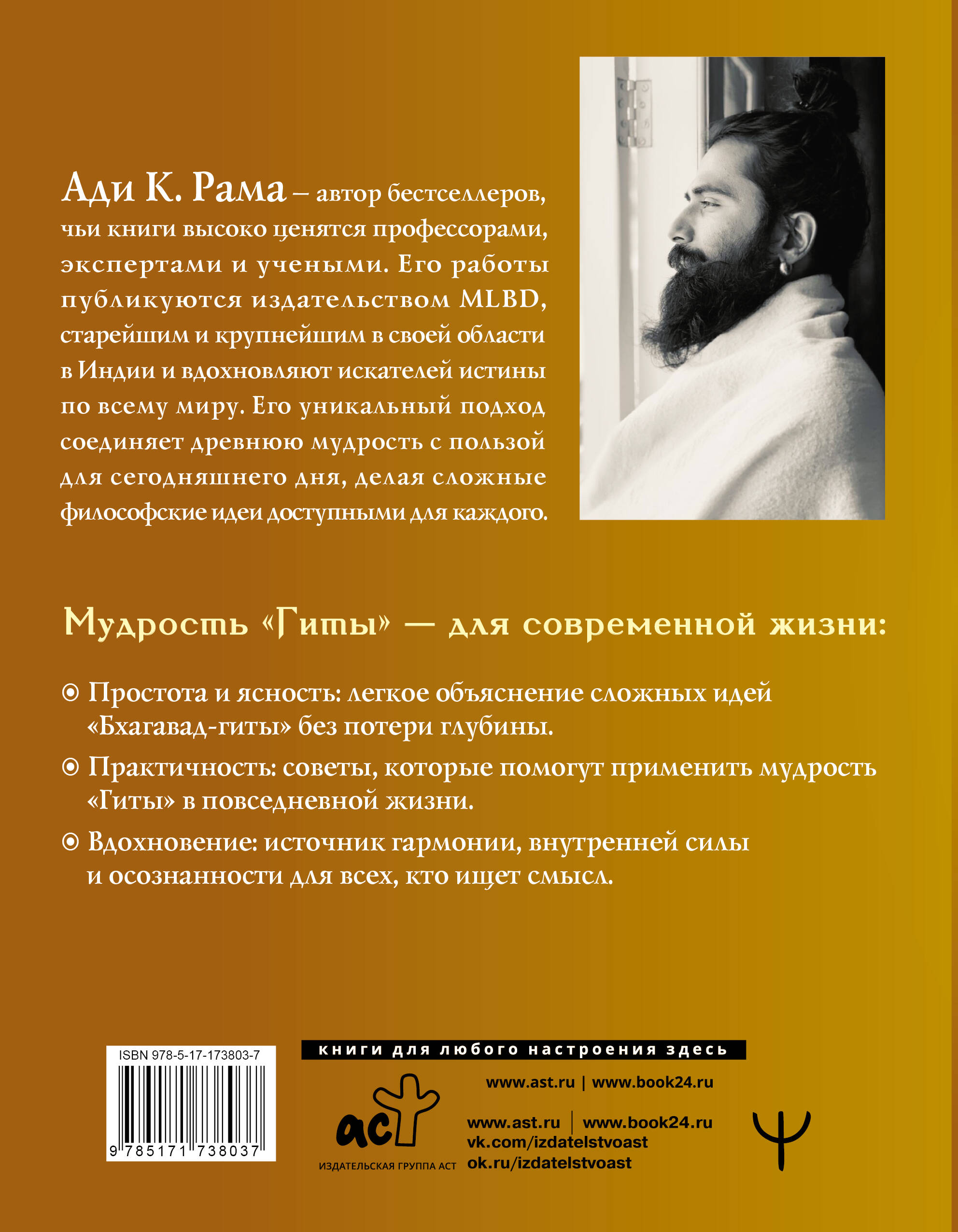 Откройте для себя простое понимание "Бхагавад-гиты" - известный индийский гуру дает вам современный и глубокий взгляд на бессмертную мудрость этого священного писания. Ади К. Рама, мастерски соединяет древние ведические знания с современными реалиями, делая их доступными и полезными для каждого. Эта книга - не просто философский труд, а духовный проводник, который поможет вам обрести ясность, гармонию и внутреннюю силу. Опираясь на наследие великих учителей, таких как Ошо, Вивекананда и Ауробиндо, автор предлагает универсальный взгляд, подходящий как новичкам, так и опытным искателям. Если вы ищете ответы на жизненные вопросы, хотите превратить неопределенность в действие, а замешательство - в ясность, эта книга станет вашим проводником к вдохновенной и осознанной жизни. Пусть простое объяснение "Бхагавад-гиты" станет началом вашего преображения. Примите этот дар как протянутую руку любви и заботы, ведущую вас к вечному источнику мира и радости, который всегда был внутри вас.| Издательство | Издательство "АСТ" |
