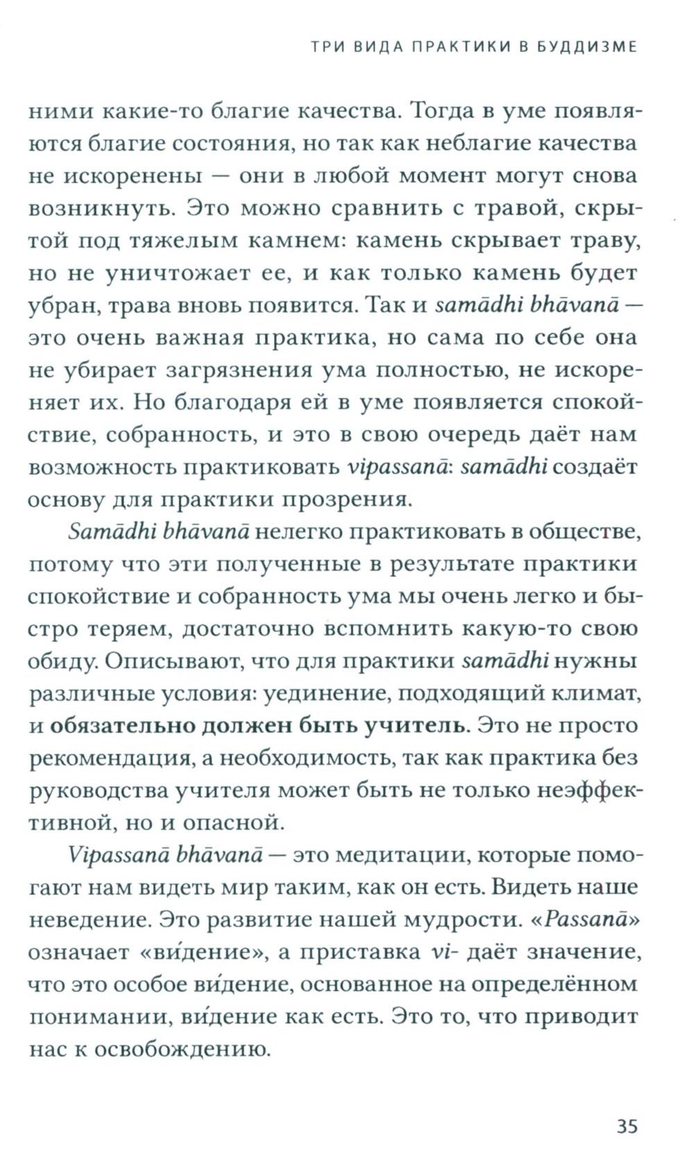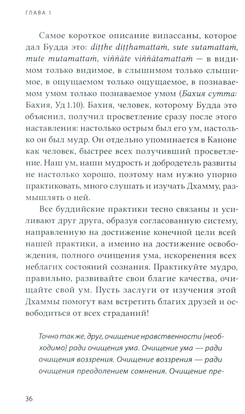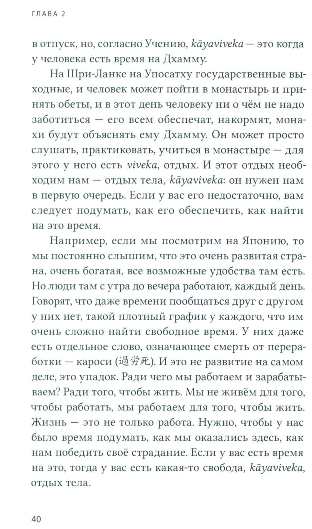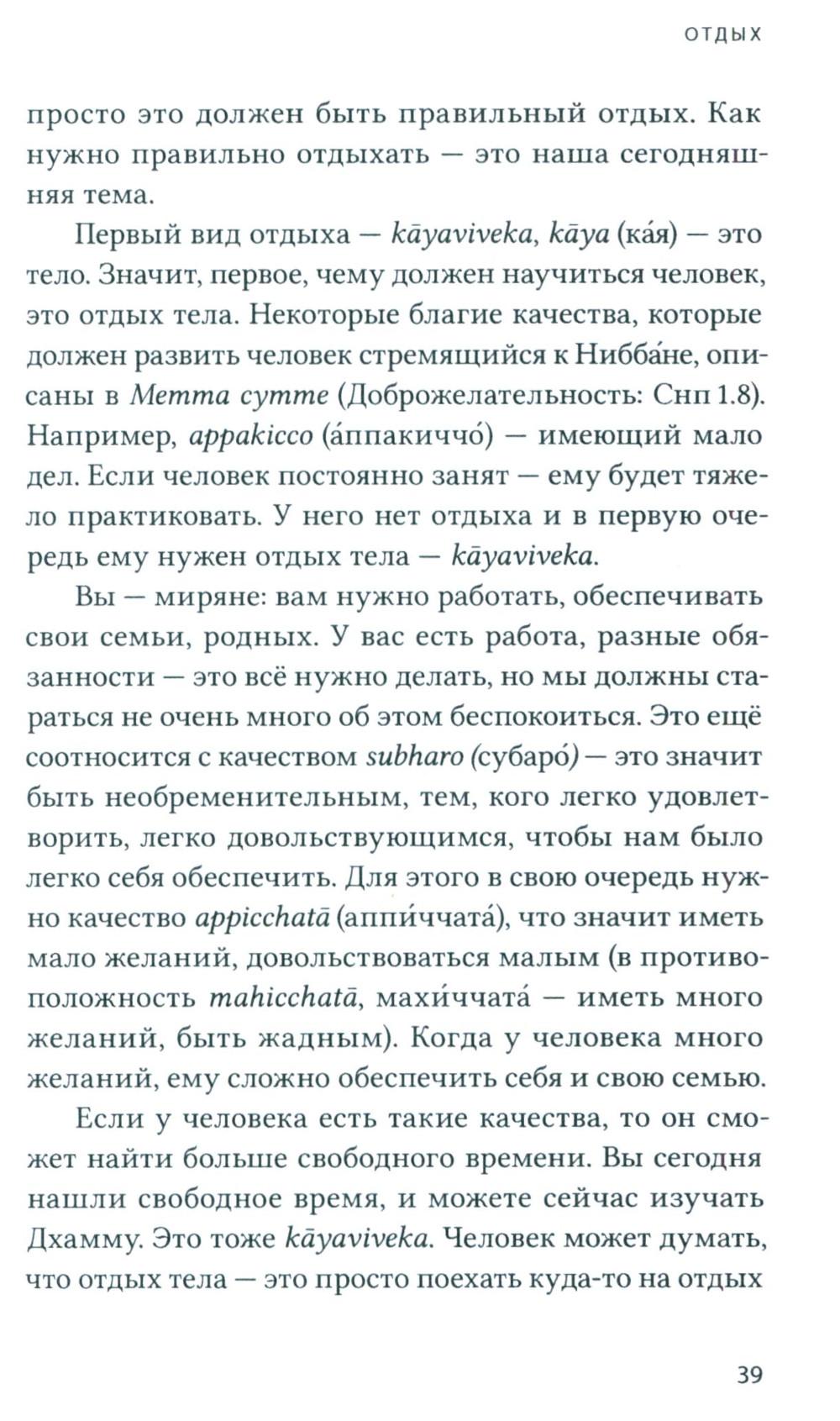Достопочтенный Ракване Ньянасиха - буддийский монах в традиции Тхеравада и настоятель лесного монастыря Читтавивека, принял монашеский постриг в 2003 году на Шри-Ланке. Эта книга - сборник его публичных лекций и личных бесед о Дхамме. Здесь читатель найдёт углублённое изложение буддийской практики випассаны, в том числе объяснение значений некоторых палийских терминов. Бханте в своих лекциях старается раз за разом донести смысл оригинальных понятий, чтобы мы смогли ощутить вкус изначальной Дхаммы Будды во всей её полноте. Книга призвана помочь читателю углубить своё понимание, а также вдохновить на практику и дальнейшее изучение Слова Будды.| Издательство | Изд. Ганга |