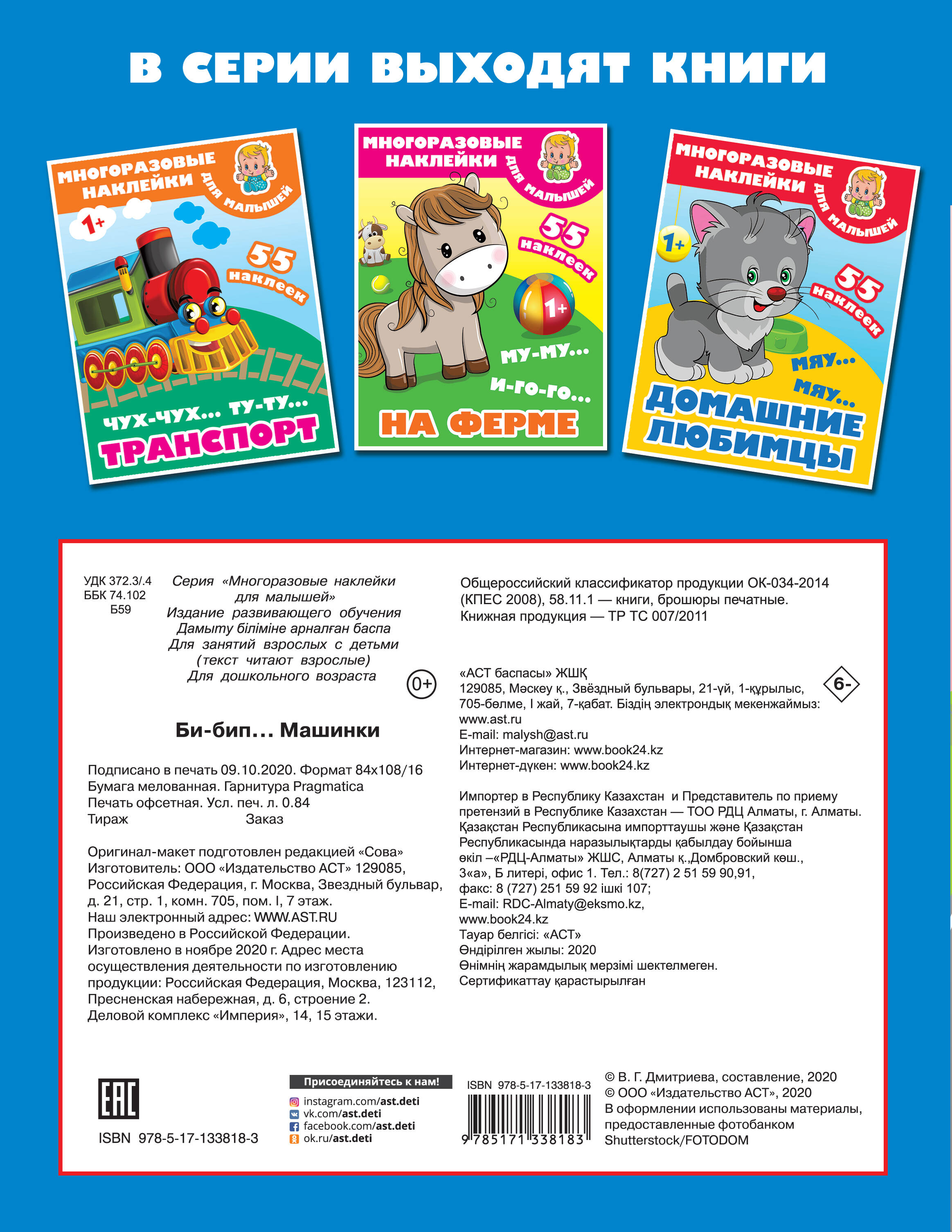 О чем эта книга Прекрасно иллюстрированная книга с многоразовыми наклейками познакомит ребенка с миром автомобильной техники. Кому эта книга будет интересна Развивающая книжка + коллекция многоразовых наклеек для любознательных малышей. Каковы особенности этой книги • Яркие иллюстрации автомобильной трассы и многоразовые наклейки, которые можно приклеивать и отклеивать много раз. • Подбор наклеек мультяшных машинок сделают игры с книжкой увлекательными и полезными. • Книжка с наклейками поможет раскрыть интеллектуальный и творческий потенциал ребёнка, развить воображение, память, логику, мелкую моторику и расширить кругозор, подарит много положительных эмоций. • Книжка издана на мелованной бумаге, которая идеально подходит для работы с многоразовыми наклейками.| Издательство | ИЗДАТЕЛЬСТВО "АСТ" |