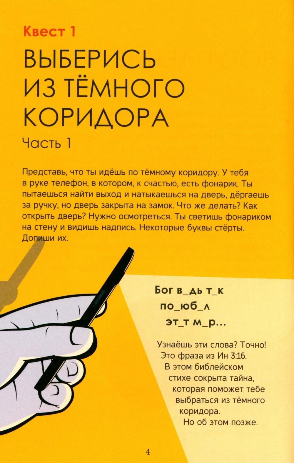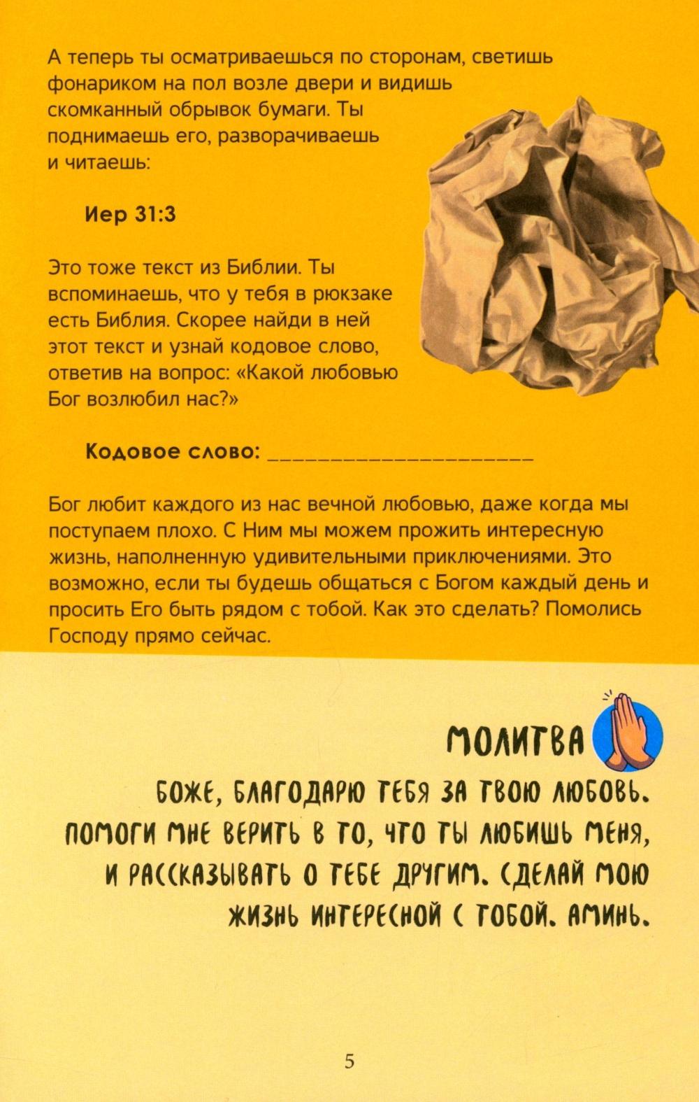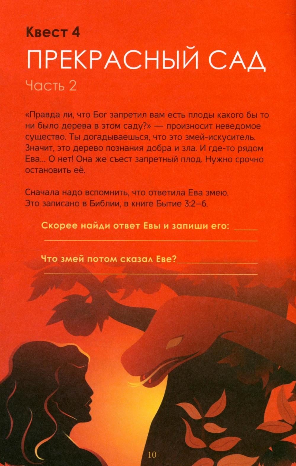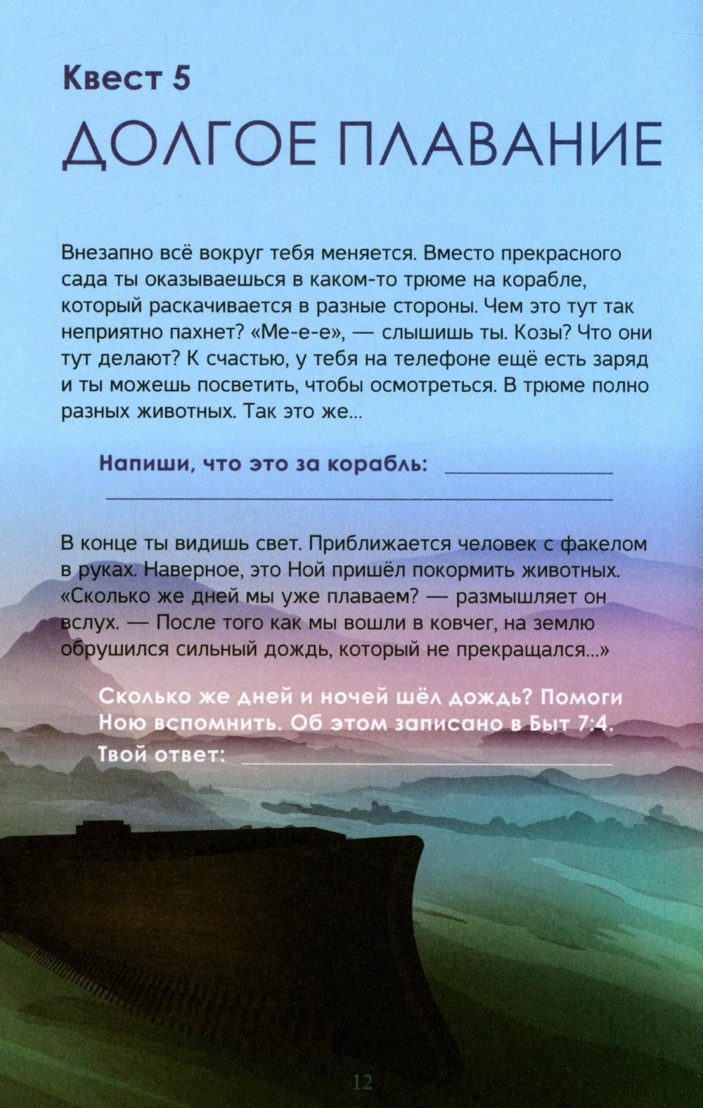 Приключения и загадки ждут тебя на страницах этого квестбука по книге Бытие. Попробуй остановить Еву, чтобы она не съела запретный плод, побывай в Ноевом ковчеге и разгадай загадку стеллажа с книгами! Включай смекалку, разгадывай шифры, узнавай значения древних слов и ищи ответы в Библии! Это поможет тебе изучить библейские сюжеты и пережить много удивительных событий вместе с героями книги Бытие.| Издательство | Источник жизни |