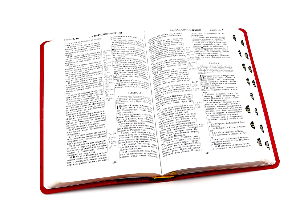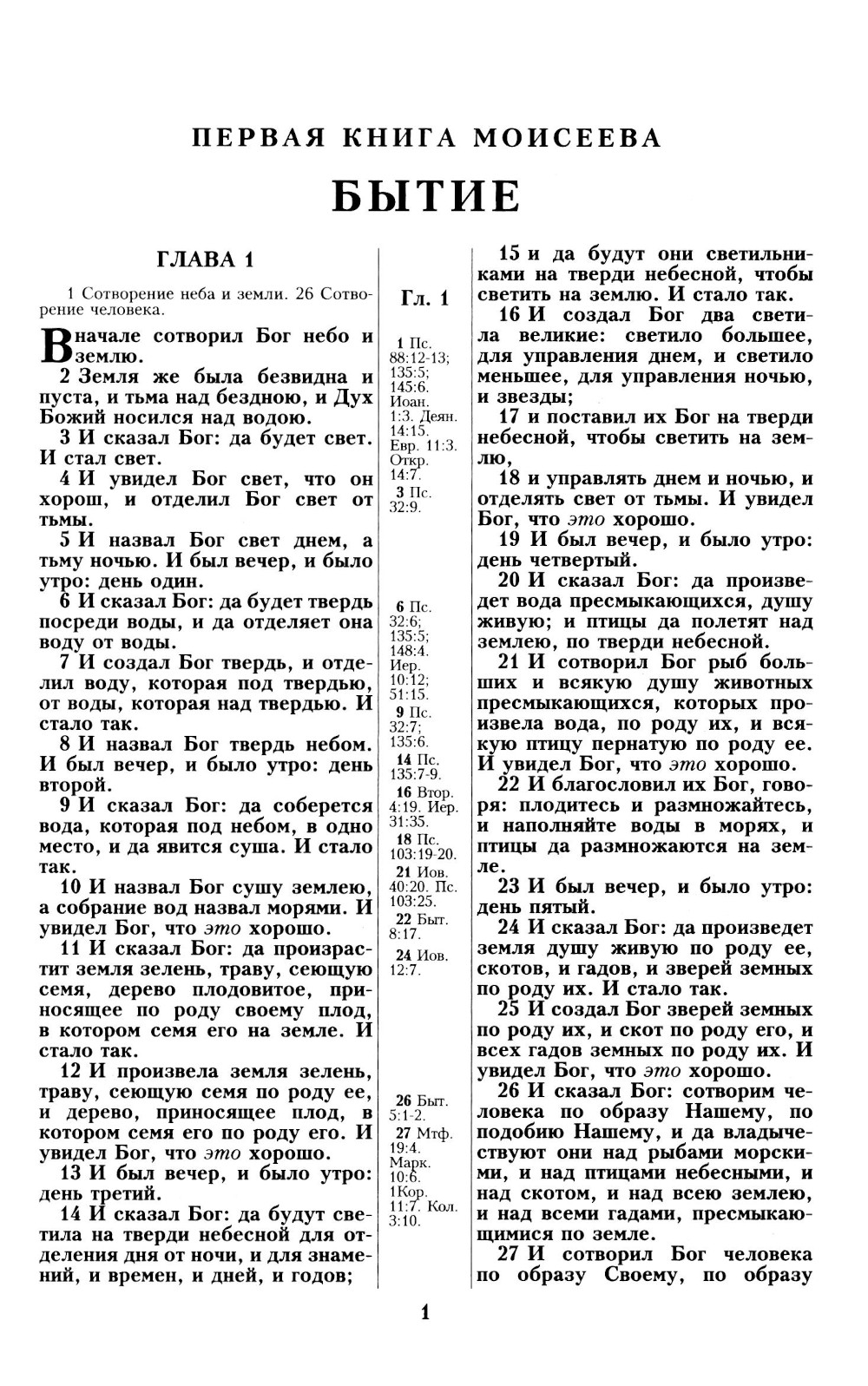 Библия - это сборник из 66 книг. У Библии много авторов, которые писали ее больше полутора тысяч лет. Книги объединяет одно - каждая создана под вдохновением от Бога. Более того, через все книги проходит одна тема - спасение человечества от смерти и греха Иисусом Христом. Структура Библия состоит из двух частей: Ветхого Завета и Нового Завета. В Ветхом Завете 39 книг, написание которых заняло больше тысячи лет. Он в три раза больше Нового по объему и заканчивается книгой пророка Малахии, жившего в V веке до Р. Х. Новый Завет был написан в I веке по Р. Х. В нем 27 книг. Сколько лет составлялась Библия Моисей написал свои книги примерно в 1 500 году до Р. Х., а апостол Иоанн создал Откровение около 100 года по Р. Х. Между этими датами, то есть в течение 1 600 лет, были написаны остальные книги. Авторы Библии У Библии много авторов, живших в разные исторические эпохи. Основу Ветхого Завета - Пятикнижие - написал Моисей, живший около XV века до Р. Х. Остальные книги Ветхого Завета написаны еврейскими царями, пророками, судьями, священниками. Новый Завет - это труд учеников Иисуса Христа, называемых апостолами. Четыре Евангелия написаны Матфеем, Марком, Лукой и Иоанном. Синодальный перевод Перед вами Синодальный перевод Библии, вышедший впервые в 1876 году. Считается классическим русским переводом книг Ветхого и Нового Завета.| Издательство | Источник жизни |