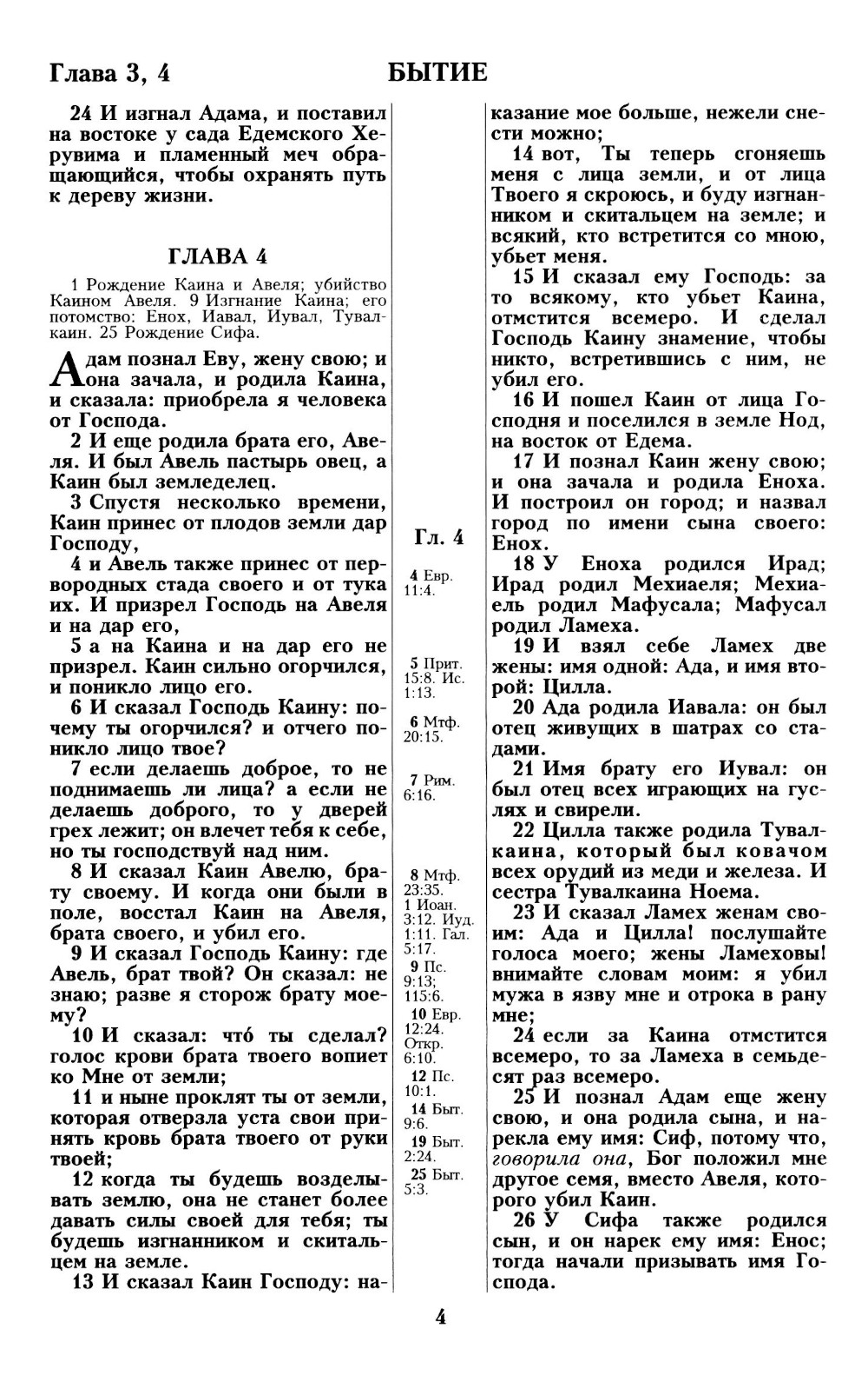 Библия - это сборник из 66 книг. У Библии много авторов, которые писали ее больше полутора тысяч лет. Книги объединяет одно - каждая создана под вдохновением от Бога. Более того, через все книги проходит одна тема - спасение человечества от смерти и греха Иисусом Христом. Структура Библия состоит из двух частей: Ветхого Завета и Нового Завета. В Ветхом Завете 39 книг, написание которых заняло больше тысячи лет. Он в три раза больше Нового по объему и заканчивается книгой пророка Малахии, жившего в V веке до Р. Х. Новый Завет был написан в I веке по Р. Х. В нем 27 книг. Сколько лет составлялась Библия Моисей написал свои книги примерно в 1 500 году до Р. Х., а апостол Иоанн создал Откровение около 100 года по Р. Х. Между этими датами, то есть в течение 1 600 лет, были написаны остальные книги. Авторы Библии У Библии много авторов, живших в разные исторические эпохи. Основу Ветхого Завета - Пятикнижие - написал Моисей, живший около XV века до Р. Х. Остальные книги Ветхого Завета написаны еврейскими царями, пророками, судьями, священниками. Новый Завет - это труд учеников Иисуса Христа, называемых апостолами. Четыре Евангелия написаны Матфеем, Марком, Лукой и Иоанном. Синодальный перевод Перед вами Синодальный перевод Библии, вышедший впервые в 1876 году. Считается классическим русским переводом книг Ветхого и Нового Завета.| Издательство | Источник жизни |