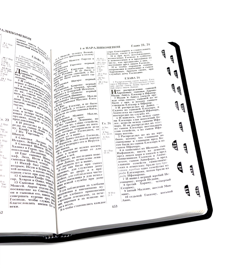 Библия - это сборник из 66 книг. У Библии много авторов, которые писали ее больше полутора тысяч лет. Книги объединяет одно - каждая создана под вдохновением от Бога. Более того, через все книги проходит одна тема - спасение человечества от смерти и греха Иисусом Христом. Структура Библия состоит из двух частей: Ветхого Завета и Нового Завета. В Ветхом Завете 39 книг, написание которых заняло больше тысячи лет. Он в три раза больше Нового по объему и заканчивается книгой пророка Малахии, жившего в V веке до Р. Х. Новый Завет был написан в I веке по Р. Х. В нем 27 книг. Сколько лет составлялась Библия Моисей написал свои книги примерно в 1 500 году до Р. Х., а апостол Иоанн создал Откровение около 100 года по Р. Х. Между этими датами, то есть в течение 1 600 лет, были написаны остальные книги. Авторы Библии У Библии много авторов, живших в разные исторические эпохи. Основу Ветхого Завета - Пятикнижие - написал Моисей, живший около XV века до Р. Х. Остальные книги Ветхого Завета написаны еврейскими царями, пророками, судьями, священниками. Новый Завет - это труд учеников Иисуса Христа, называемых апостолами. Четыре Евангелия написаны Матфеем, Марком, Лукой и Иоанном. Синодальный перевод Перед вами Синодальный перевод Библии, вышедший впервые в 1876 году. Считается классическим русским переводом книг Ветхого и Нового Завета.| Издательство | Источник жизни |