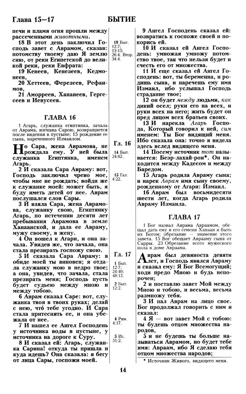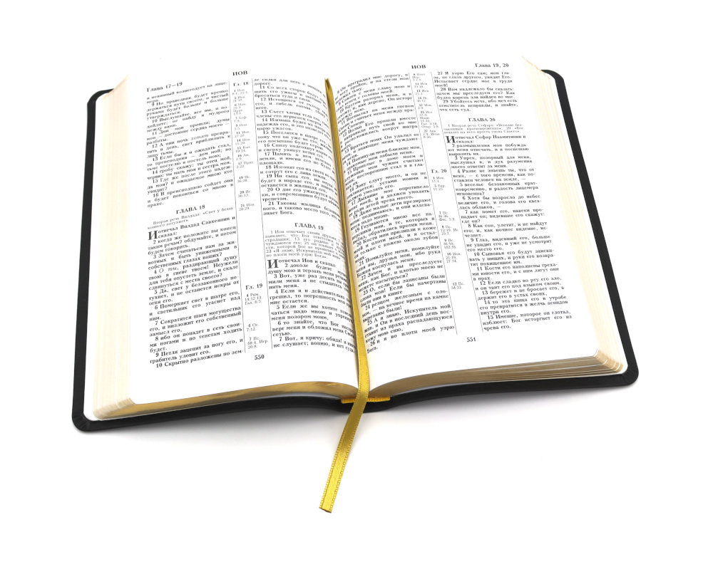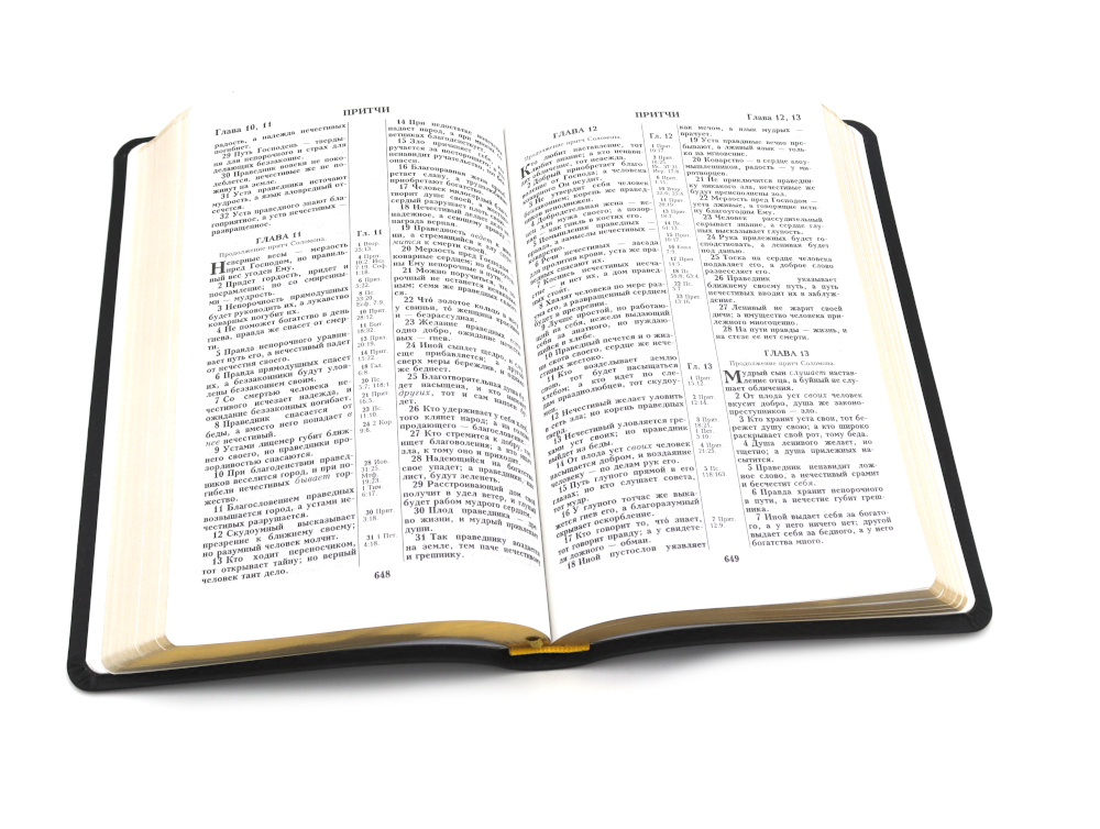 Библия - это сборник из 66 книг. У Библии много авторов, которые писали ее больше полутора тысяч лет. Книги объединяет одно - каждая создана под вдохновением от Бога. Более того, через все книги проходит одна тема - спасение человечества от смерти и греха Иисусом Христом. Структура Библия состоит из двух частей: Ветхого Завета и Нового Завета. В Ветхом Завете 39 книг, написание которых заняло больше тысячи лет. Он в три раза больше Нового по объему и заканчивается книгой пророка Малахии, жившего в V веке до Р. Х. Новый Завет был написан в I веке по Р. Х. В нем 27 книг. Сколько лет составлялась Библия Моисей написал свои книги примерно в 1 500 году до Р. Х., а апостол Иоанн создал Откровение около 100 года по Р. Х. Между этими датами, то есть в течение 1 600 лет, были написаны остальные книги. Авторы Библии У Библии много авторов, живших в разные исторические эпохи. Основу Ветхого Завета - Пятикнижие - написал Моисей, живший около XV века до Р. Х. Остальные книги Ветхого Завета написаны еврейскими царями, пророками, судьями, священниками. Новый Завет - это труд учеников Иисуса Христа, называемых апостолами. Четыре Евангелия написаны Матфеем, Марком, Лукой и Иоанном. Синодальный перевод Перед вами Синодальный перевод Библии, вышедший впервые в 1876 году. Считается классическим русским переводом книг Ветхого и Нового Завета.| Издательство | Источник жизни |