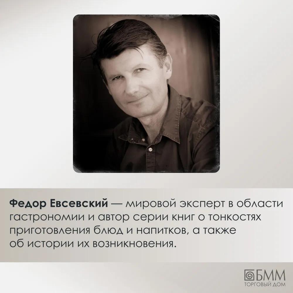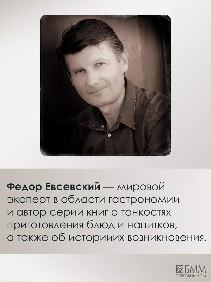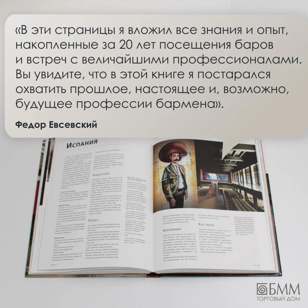 Автор книги Фёдор Евсевский - француз русского происхождения. После обучения в парижской школе гостиничного бизнеса он работал в Москве консультантом по винам и спиртным напиткам. Его "Библия бармена" стала бестселлером и самой влиятельной книгой о барах, напитках и коктейлях в России.