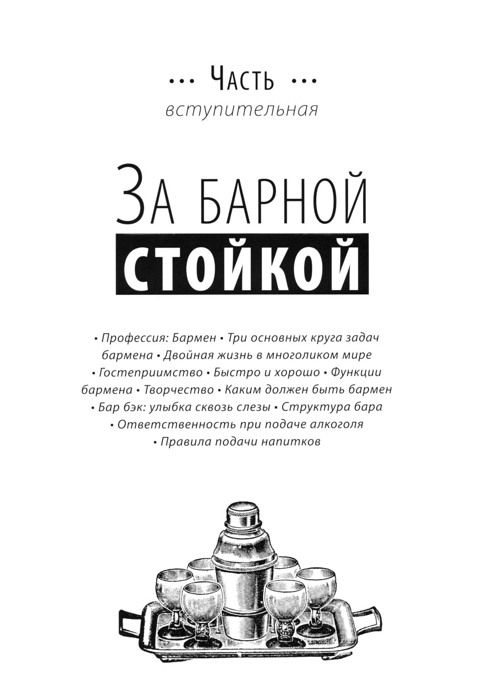 Перед вами седьмое, полностью обновлённое издание «Библии Бармена». Уже более четверти века эта книга сопровождает коктейльное движение и развитие мира спиртных напитков. Она рассказывает о всех категориях алкоголя: от биттеров и бальзамов до джина и виски, включая азиатские дистилляты и российские премиальные спиртные напитки. В ней собраны в единый коктейль славная хроника алкоголя, барная культура и сегодняшние тренды потребления. Она содержит рецепты лучших смешанных напитков, их историю и технику приготовления.