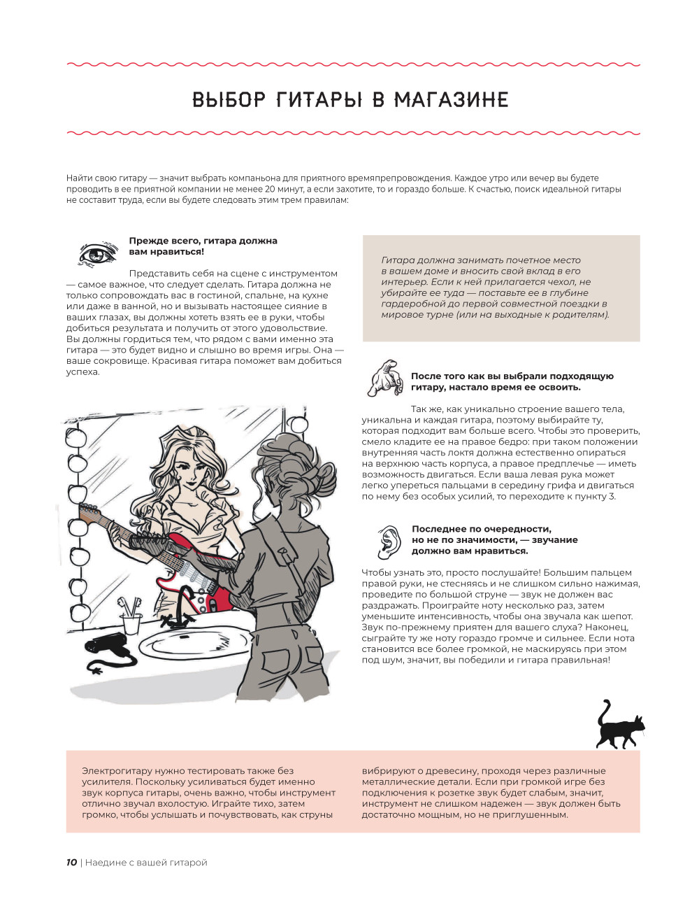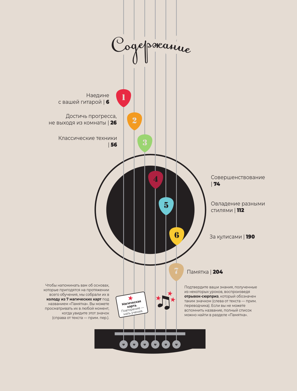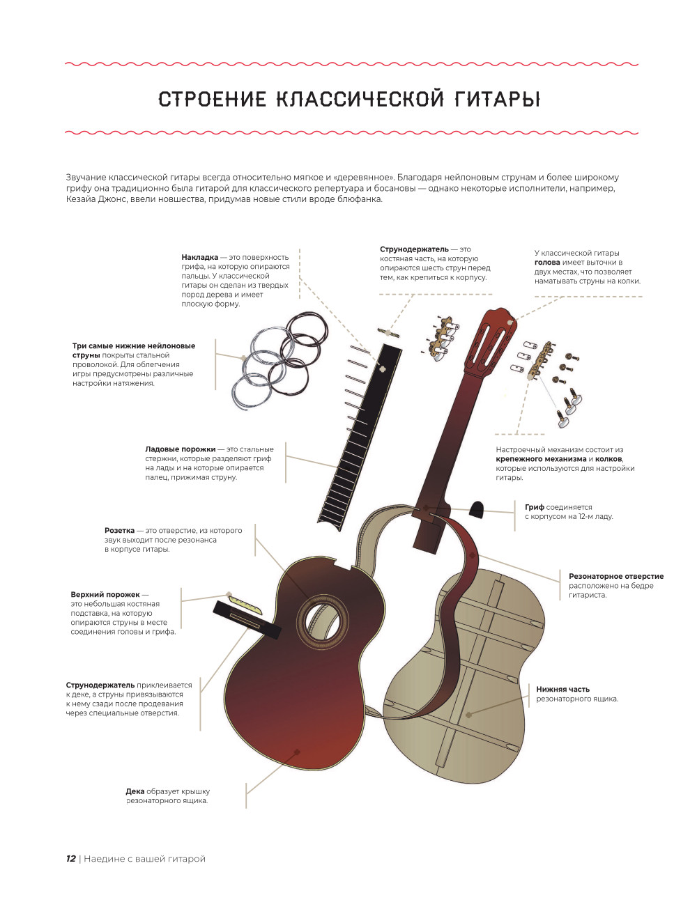 Любому, кто когда-либо пытался освоить гитару самостоятельно, на полке просто необходима книга-помощник в этом непростом начинании. Даже тем, кому кажется, что справиться удастся с помощью интернета, в какой-то момент может не хватить системного подхода. И тогда пособие от опытного автора приходит на помощь! Это большое иллюстрированное издание станет идеальным подарком для каждого, у кого есть гитара (даже если вы считаете себя экспертом!), и, конечно же, для тех, кто только собирается подступиться к новому хобби. Книга написана опытным гитаристом Эви Муном, выступающим по всему миру с известными французскими музыкантами Irma и Дженнифер Бартоли. Автор, как опытный педагог, пошагово и на понятных примерах рассказывает обо всем: как выбрать гитару, как сделать первые шаги в освоении нового инструмента и как стать настоящим музыкальным виртуозом. А иллюстрации художника Kambanart позволят увидеть каждый из процессов на примере понятных схем и ярких рисунков. Раскройте свой музыкальный потенциал с помощью книги, которая станет для вас настольной!