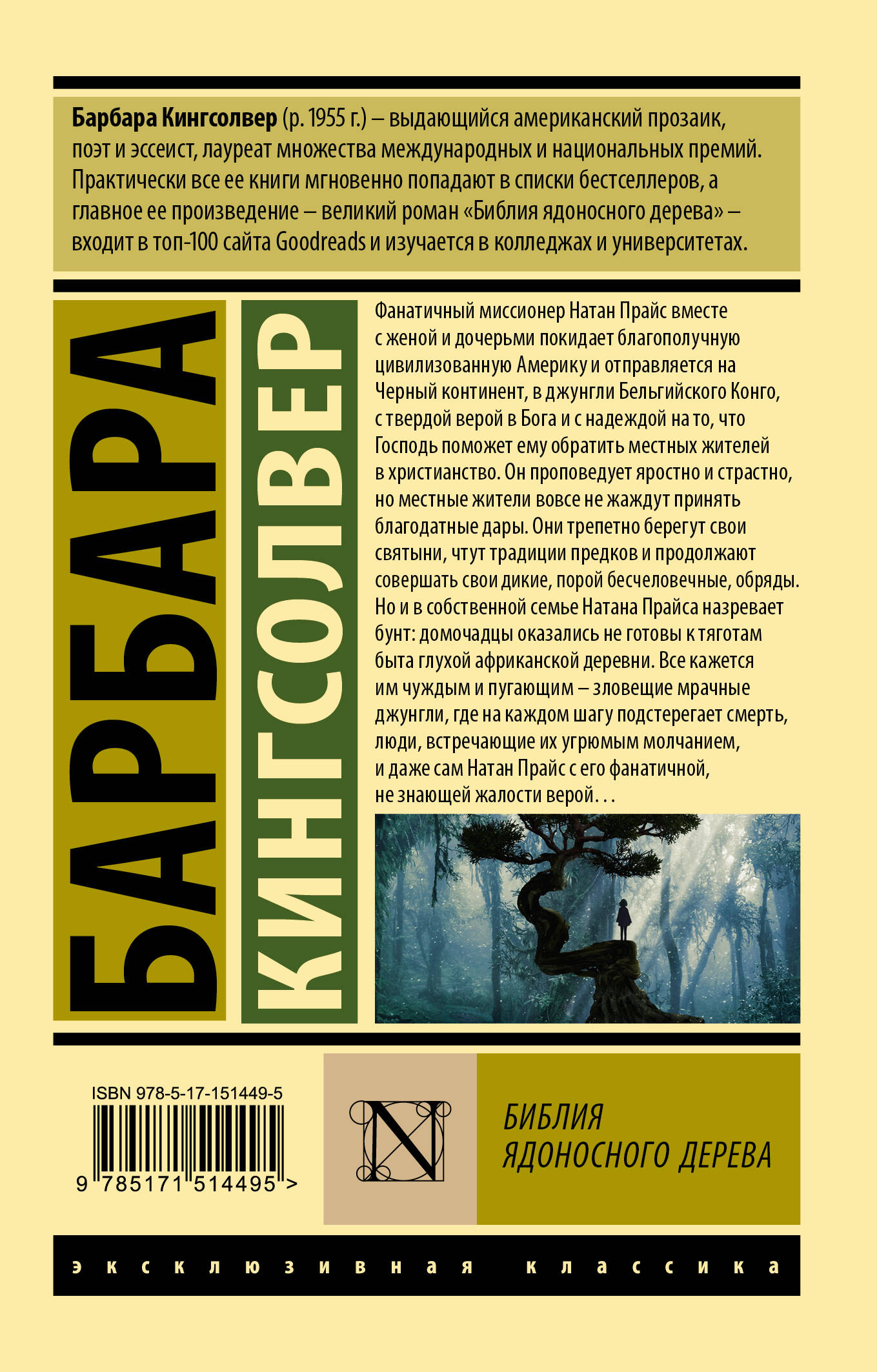 Фанатичный миссионер Натан Прайс вместе с женой и дочерьми покидает благополучную цивилизованную Америку и отправляется на Черный континент, в джунгли Бельгийского Конго, с твердой верой в Бога и с надеждой на то, что Господь поможет ему обратить местных жителей в христианство. Он проповедует яростно и страстно, но местные жители вовсе не жаждут принять благодатные дары. Они трепетно берегут свои святыни, чтут традиции предков и продолжают совершать свои дикие, порой бесчеловечные, обряды. Но и в собственной семье Натана Прайса назревает бунт: домочадцы оказались не готовы к тяготам быта глухой африканской деревни. Все кажется им чуждым и пугающим - зловещие мрачные джунгли, где на каждом шагу подстерегает смерть; люди, встречающие их угрюмым молчанием, и даже сам Натан Прайс с его фанатичной, не знающей жалости верой…| Издательство | ИЗДАТЕЛЬСТВО "АСТ" |