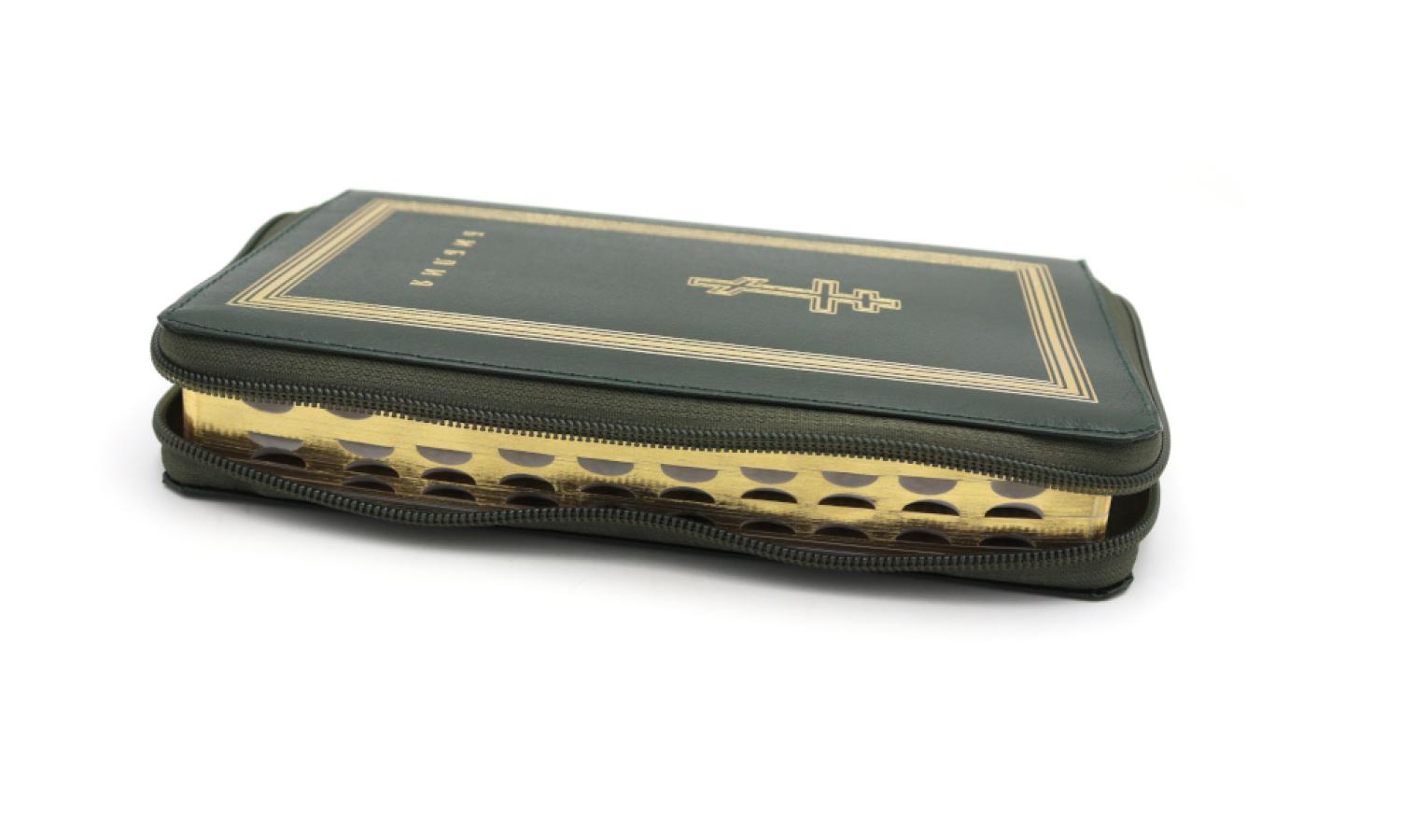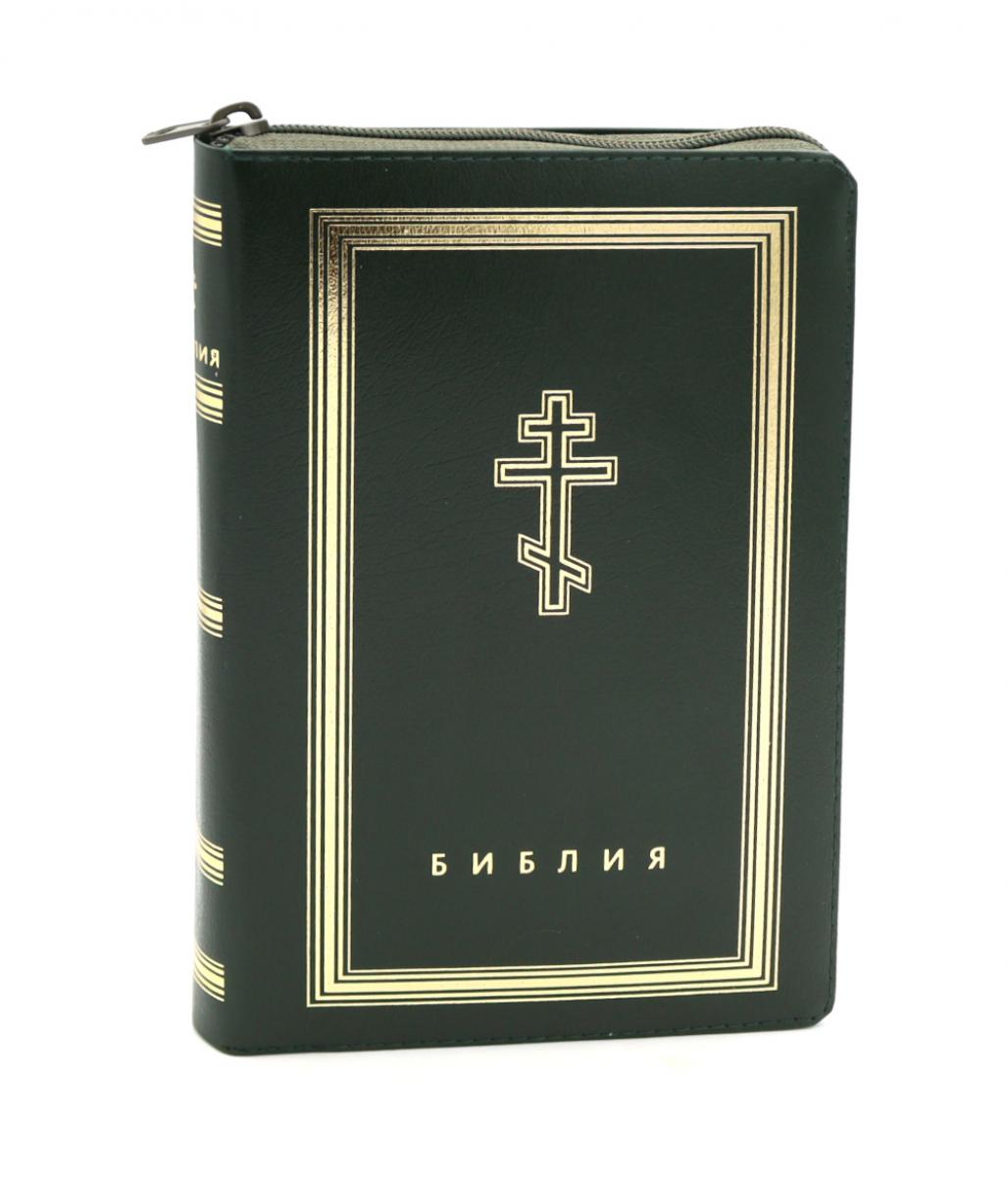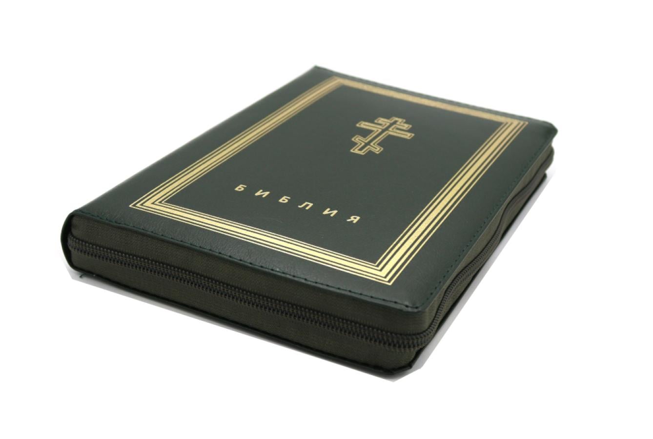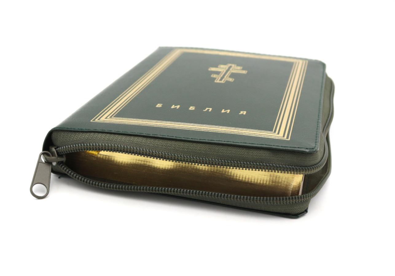 Библия. Книги Священного Писания Ветхого и Нового Завета (рециклированная кожа темно-зеленая, молния, золот.обрез)