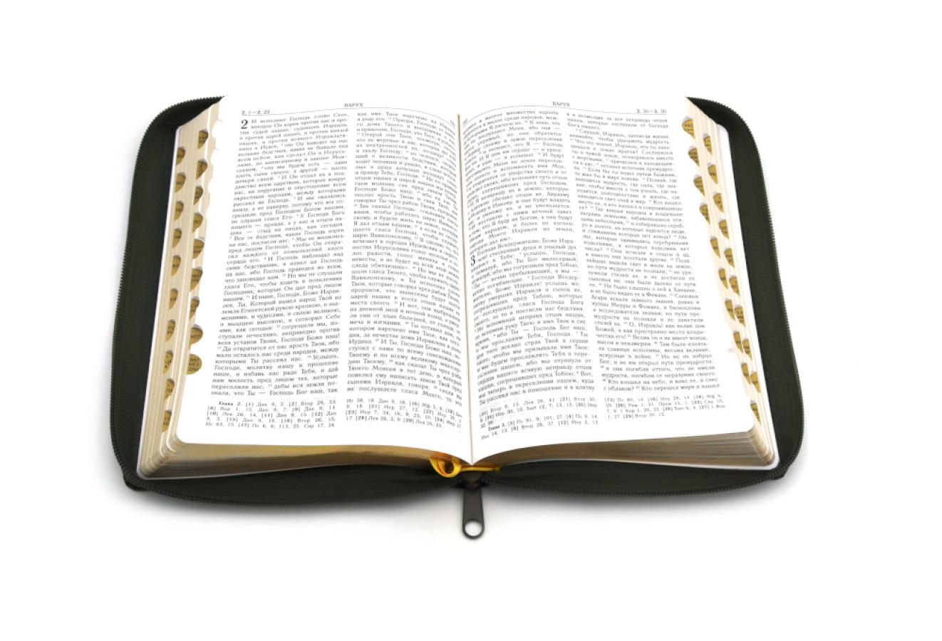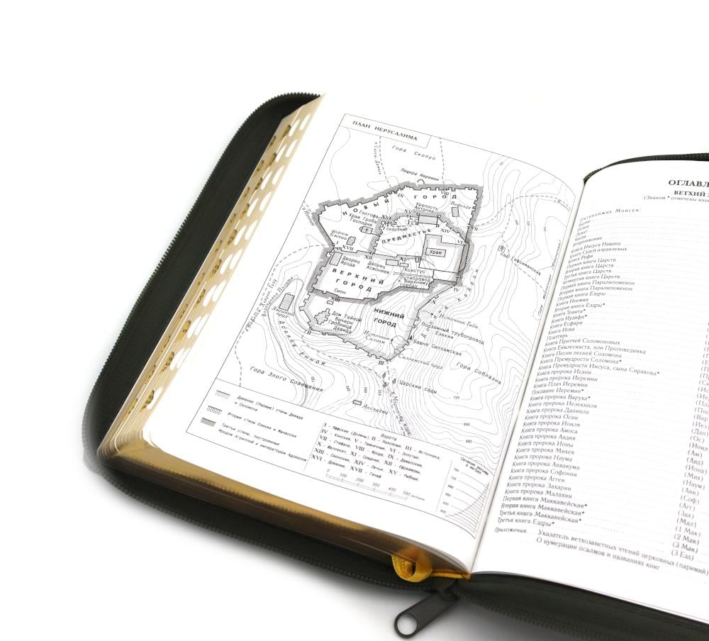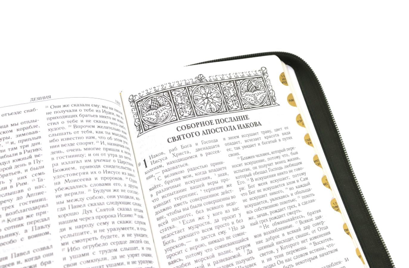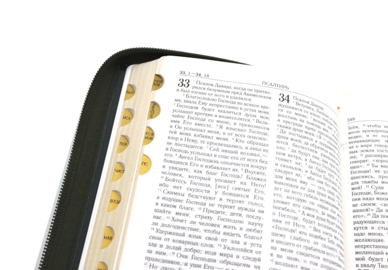 Библия. Книги Священного Писания Ветхого и Нового Завета (рециклированная кожа темно-зеленая, молния, золот.обрез)